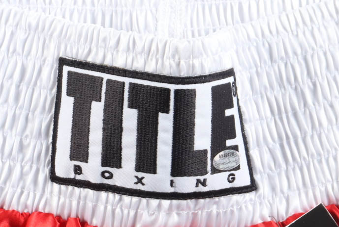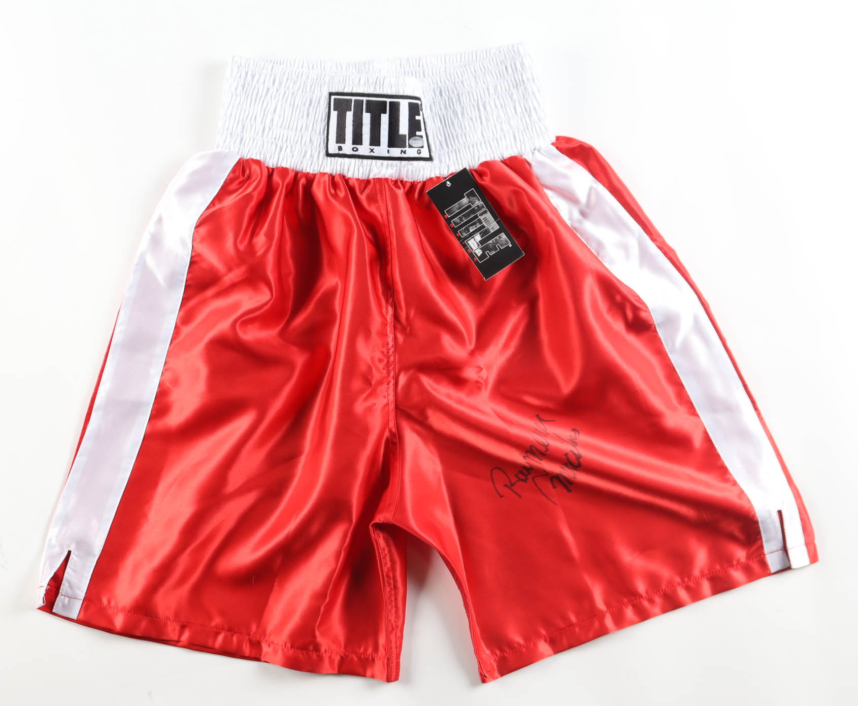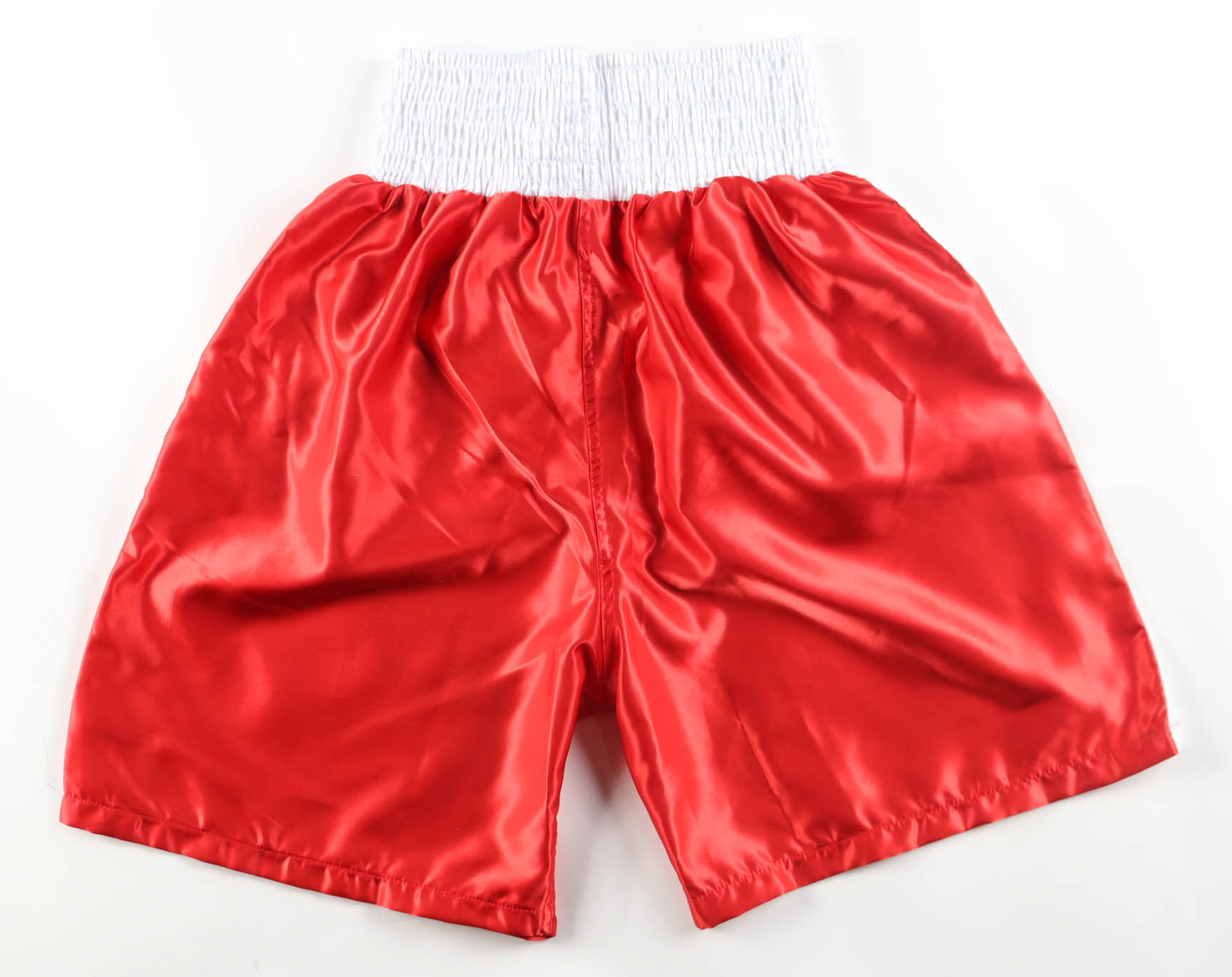 Title boxing shorts have been hand-signed and inscribed by Ray Mercer.