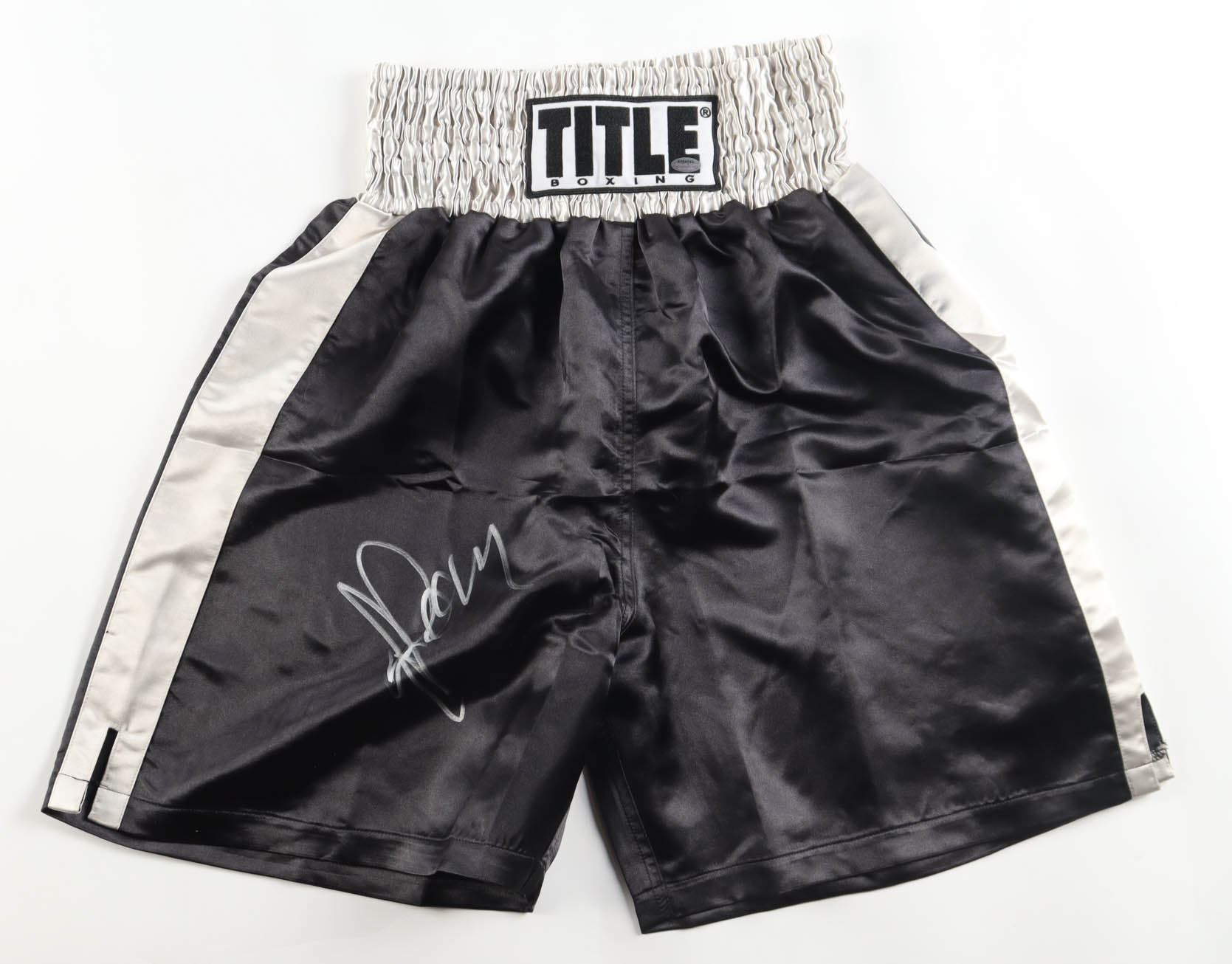 Title boxing shorts, size XL. Hand-signed by Gerry Cooney.