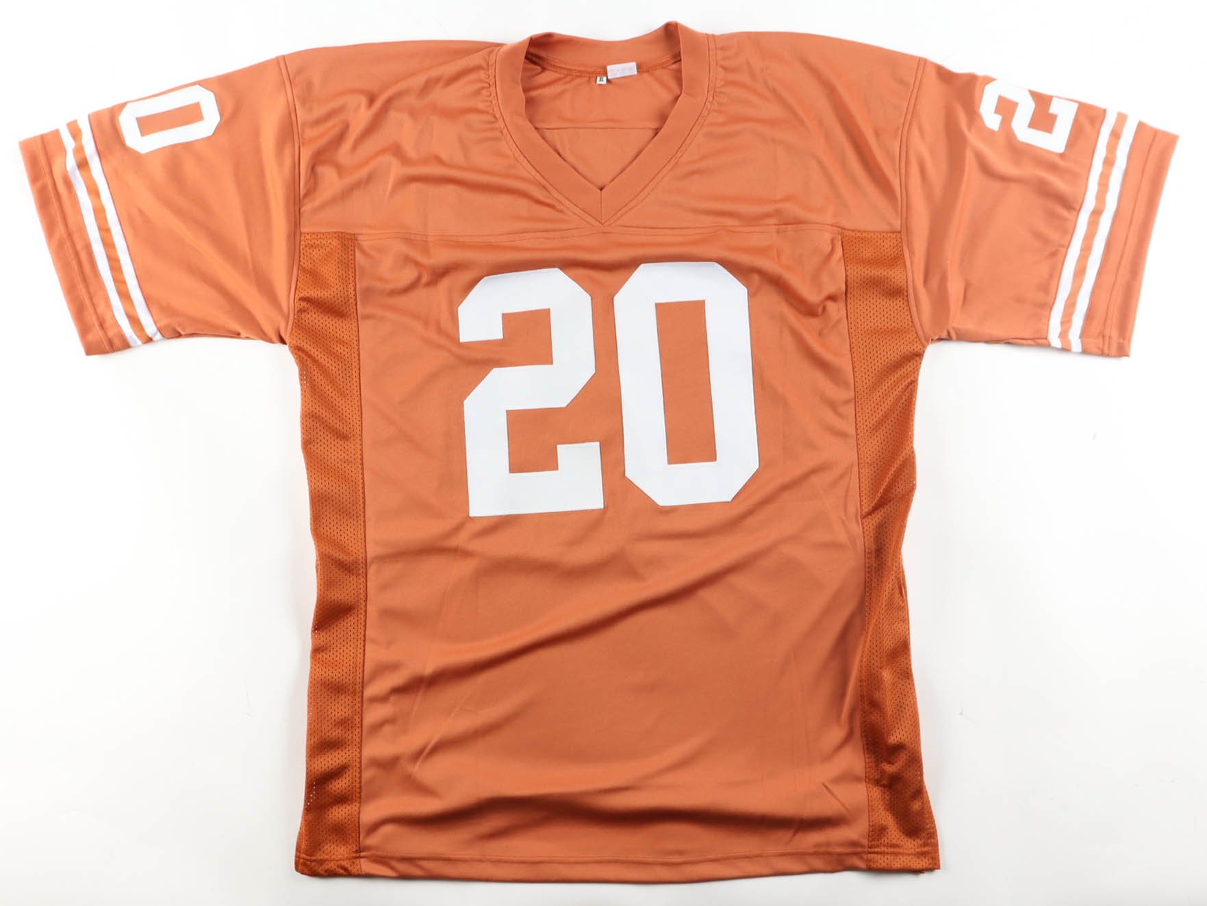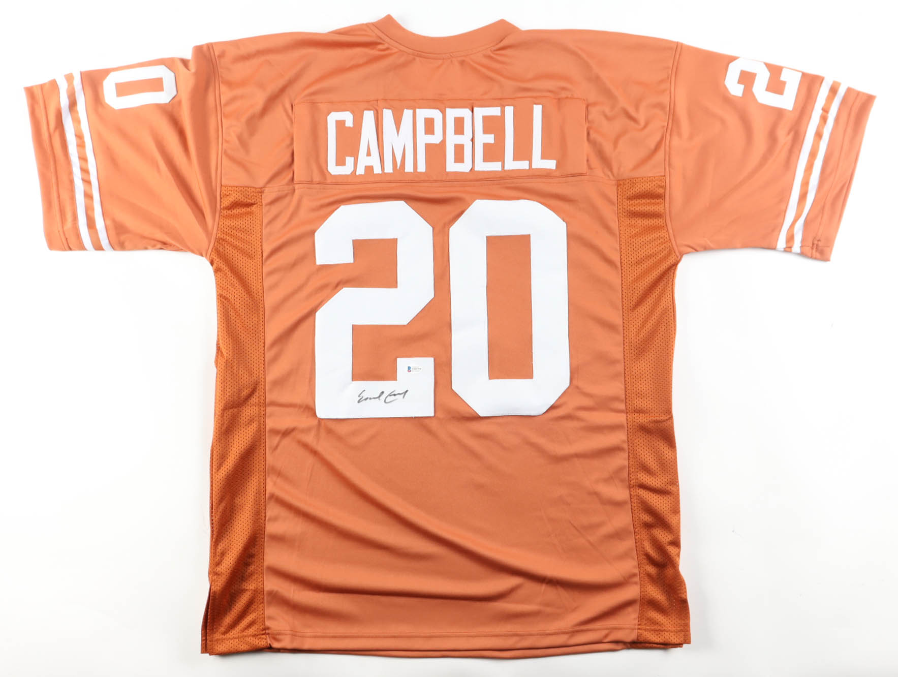 Custom jersey with everything sewn on, size XL. Hand-signed by Earl Campbell (Texas Longhorns, HOF).