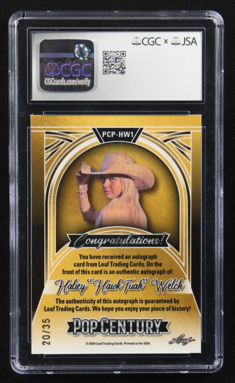 Hailey "Hawk Tuah" Welch 2024 Leaf Pop Century Preview Web Exclusives Silver Crystals Autographs #PCPHW1 (CGC x JSA 10 | Auto Grade CGC x JSA 10)