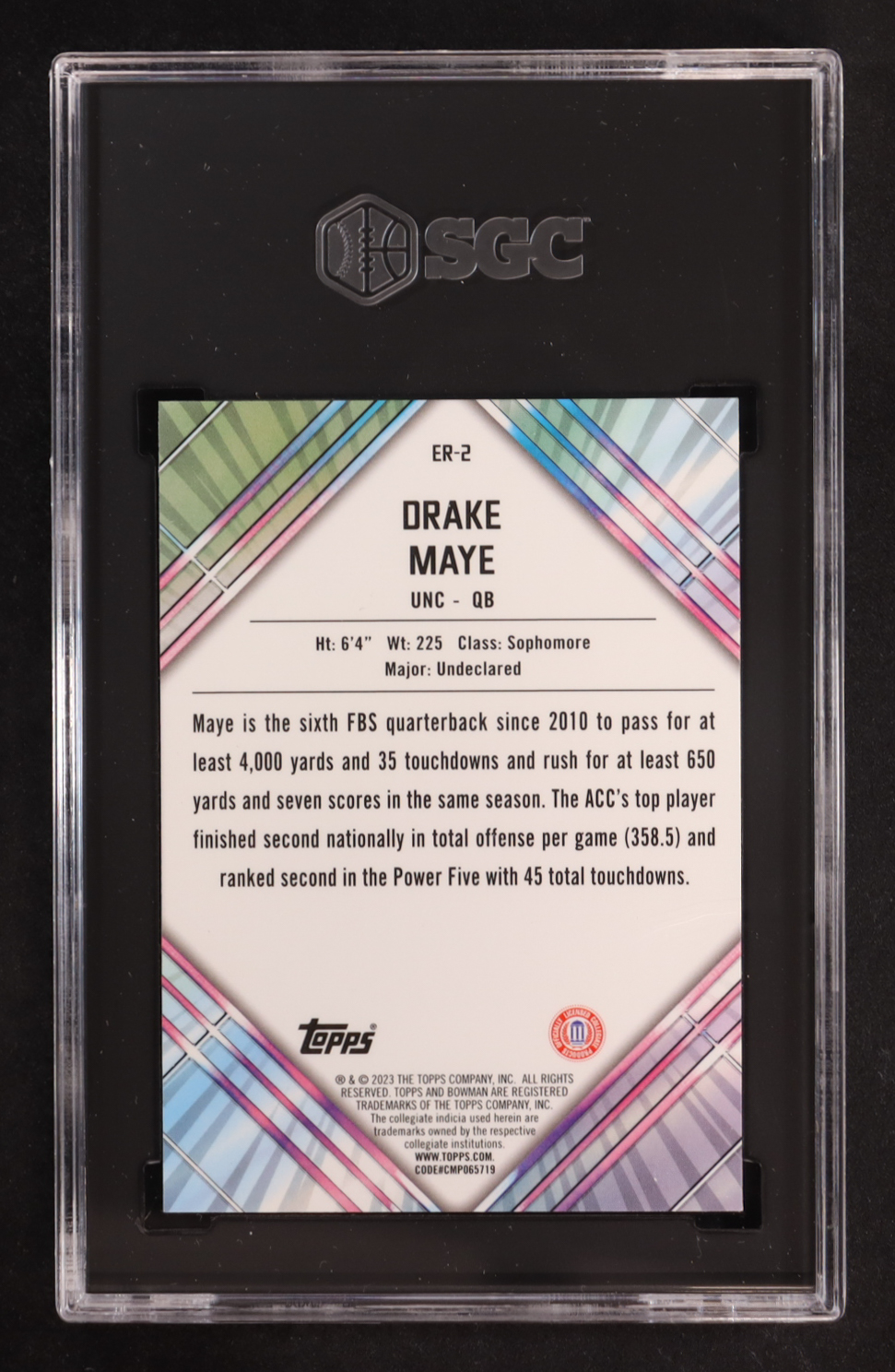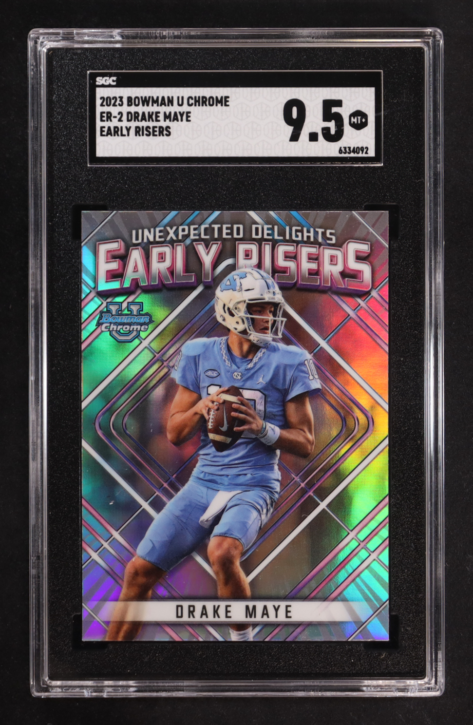 Drake Maye 2023 Bowman Chrome University Unexpected Delights Early Risers #ER2 RC (SGC 9.5)
