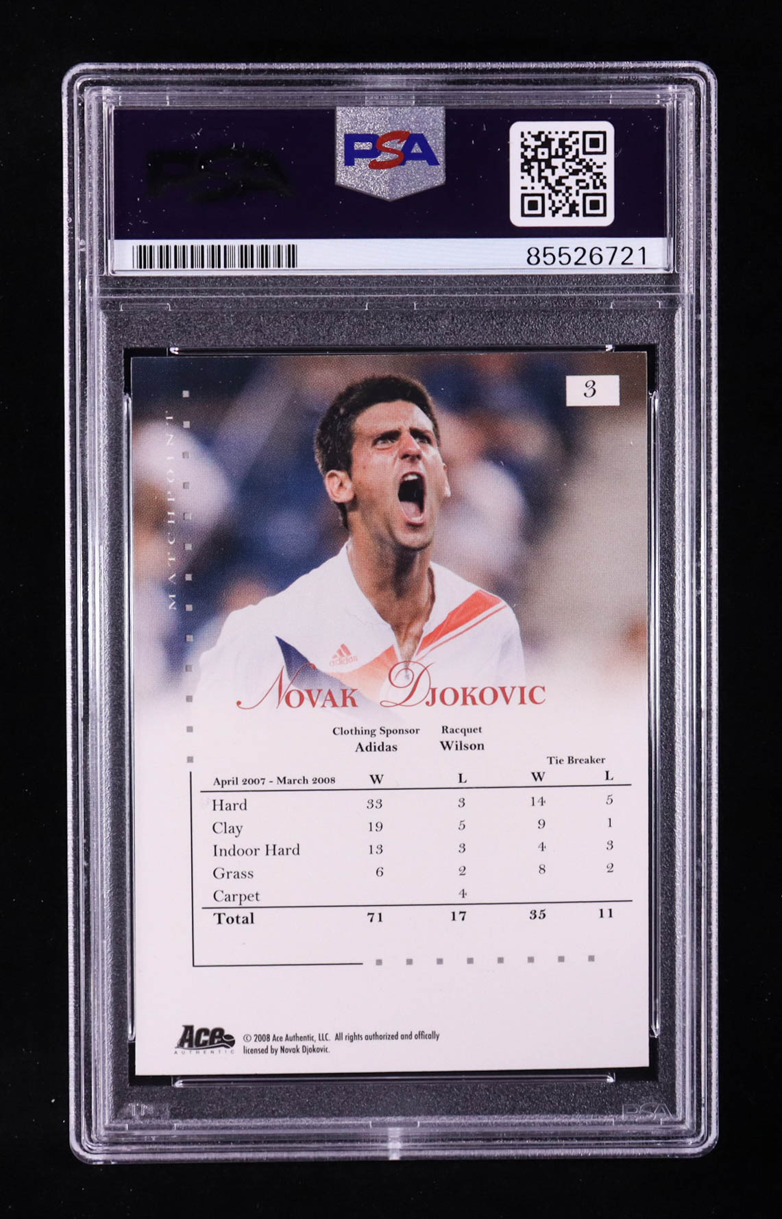 Novak Djokovic Signed 2008 Ace Authentic Match Point #3 (PSA)