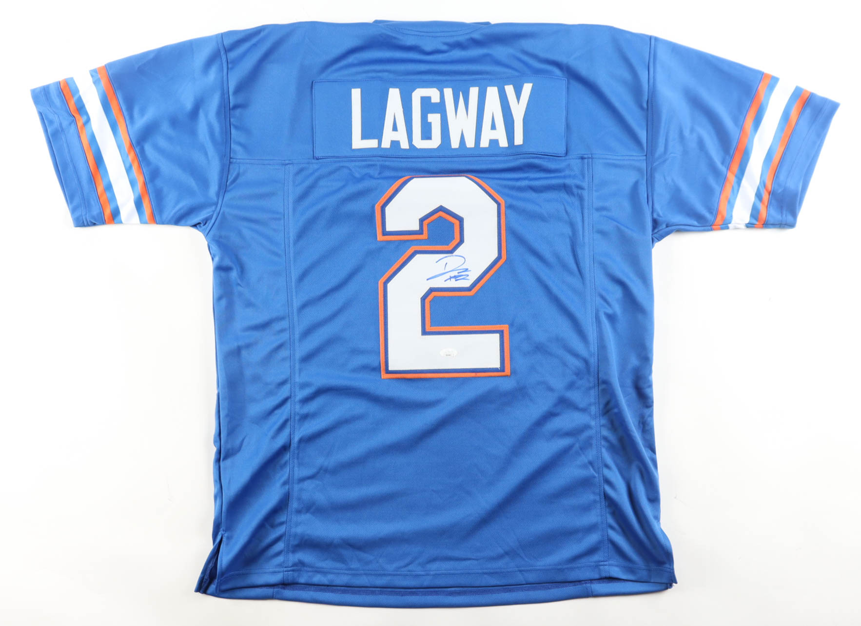 Custom jersey with everything sewn on, size XL. Hand-signed by DJ Lagway.