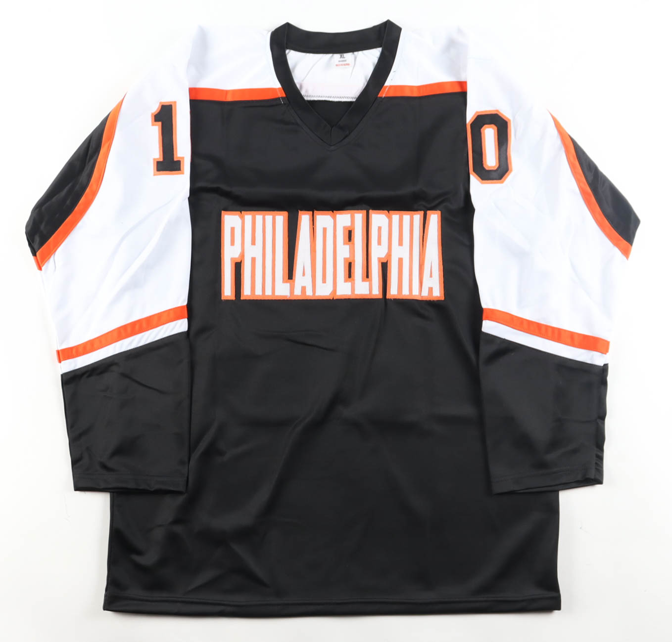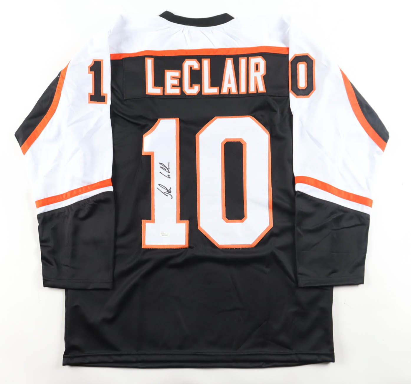 Custom jersey with everything sewn on, size XL. Hand-signed by John LeClair (Philadelphia Flyers).