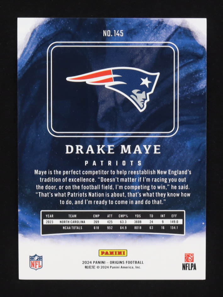 Drake Maye 2024 Panini Origins Orange #145 RC #040/149