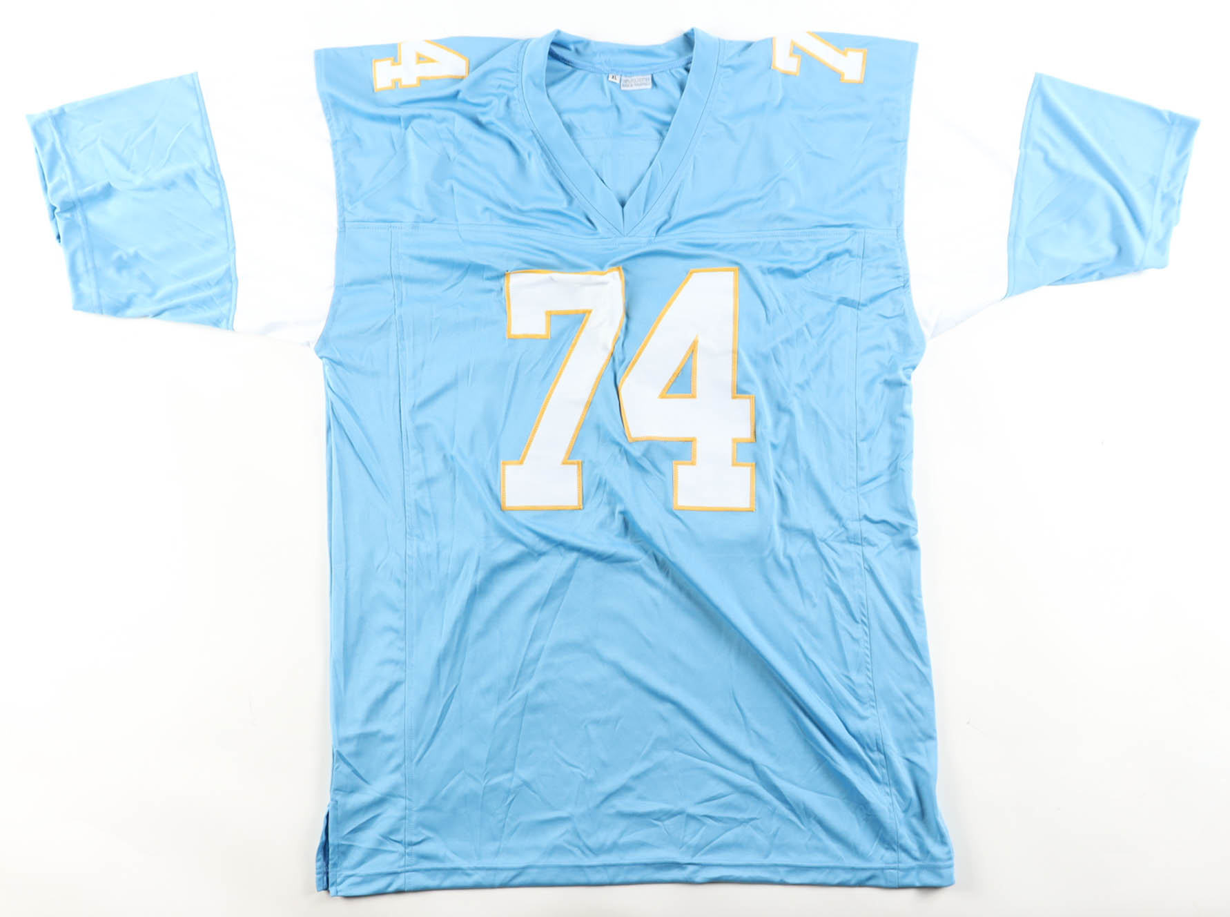 Custom jersey with everything sewn on, size XL. Jersey has been hand-signed and inscribed by Ron Mix (HOF).