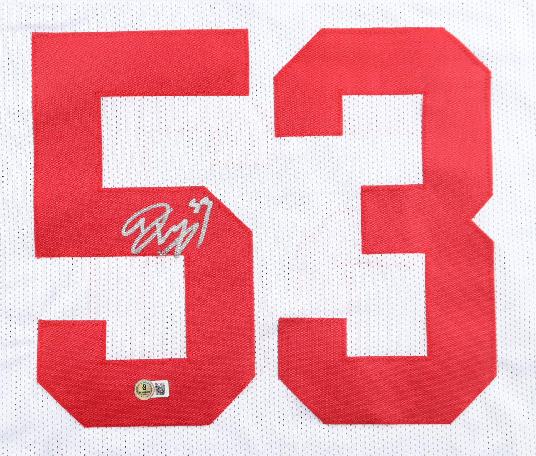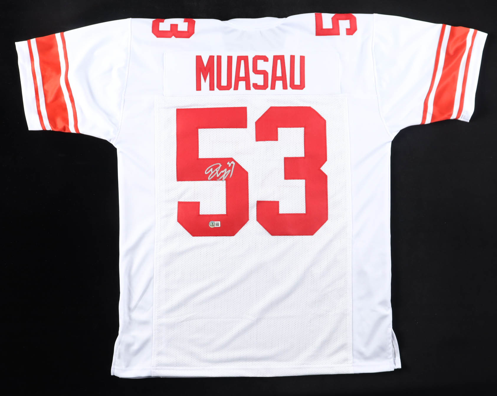 Custom jersey with everything sewn on, size XL. Hand-signed by Darius Muasau.