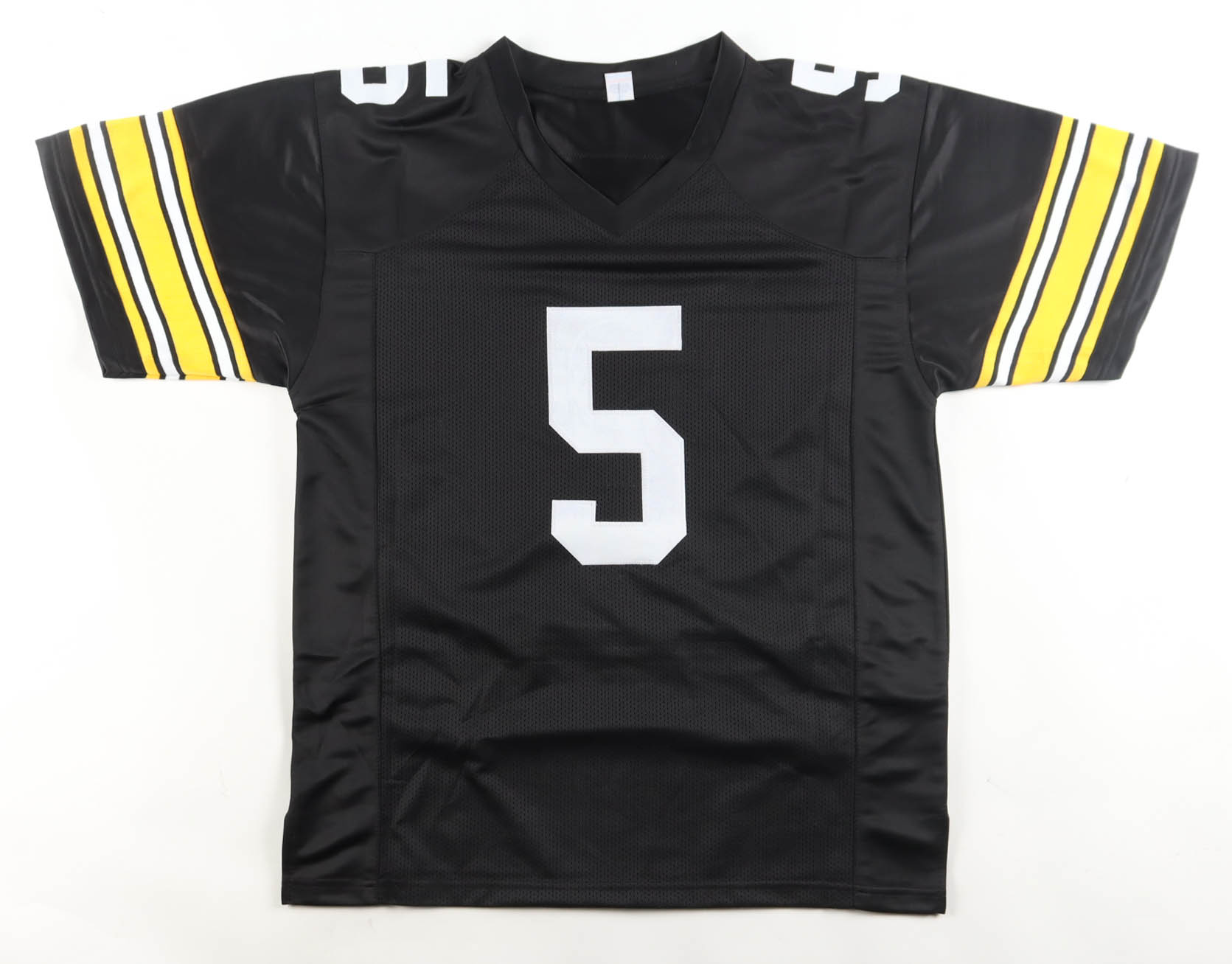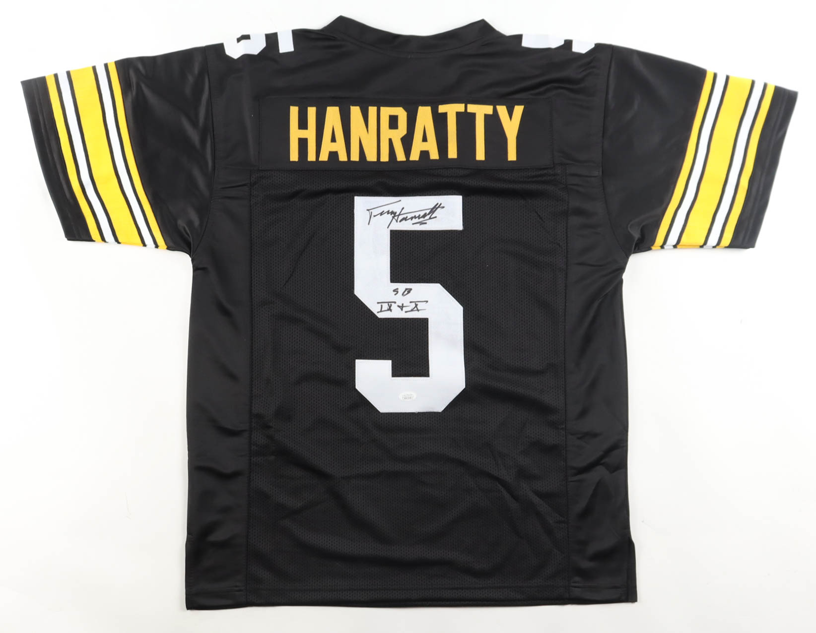 Custom jersey with everything sewn on, size XL. Hand-signed and inscribed by Terry Hanratty. Please note, glue is visible through the jersey numbers. See photos regarding the condition of the item.