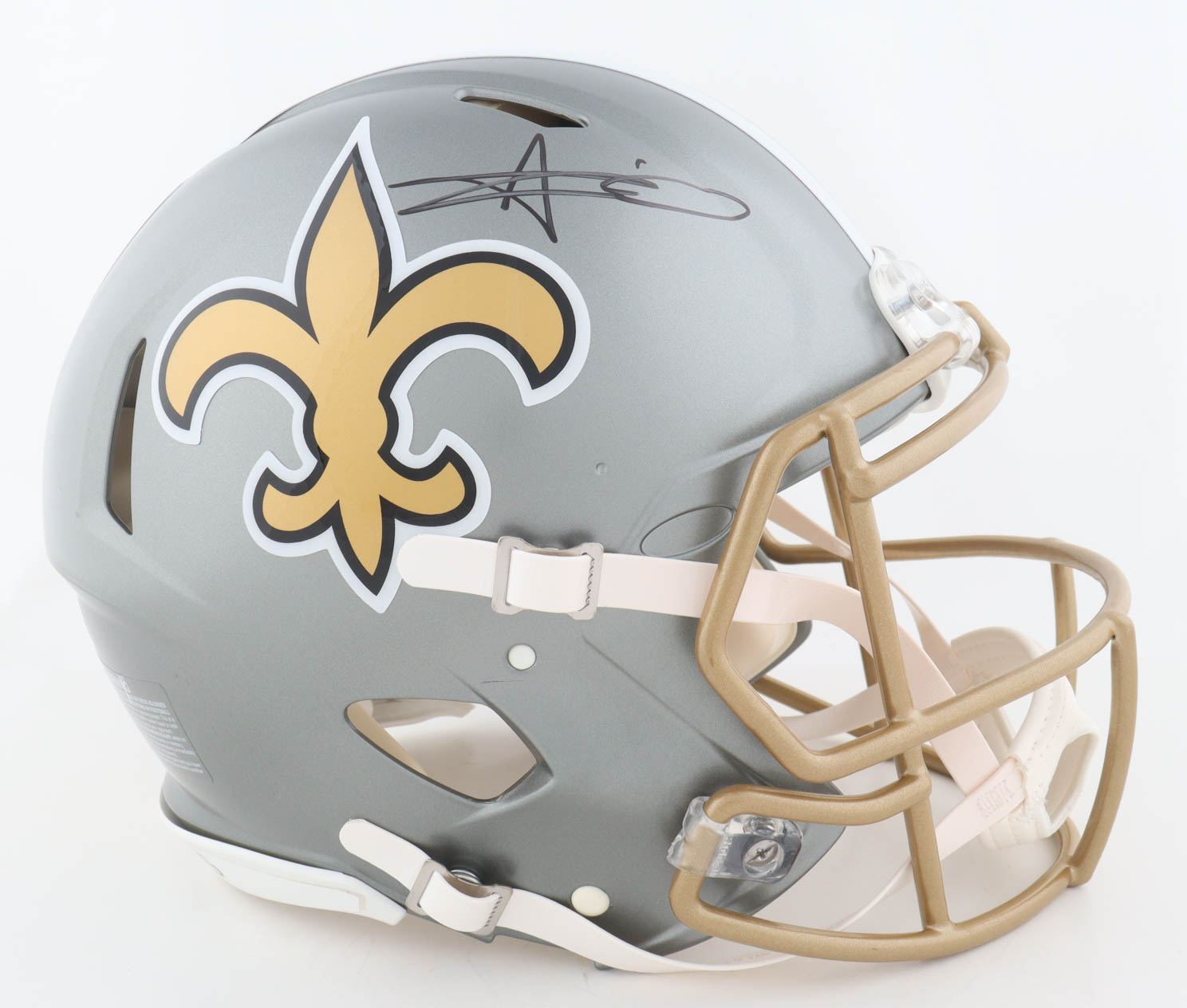 Riddell New Orleans Saints Full-Size Authentic On-Field Flash Alternate Speed Helmet. Hand-signed by Alvin Kamara.