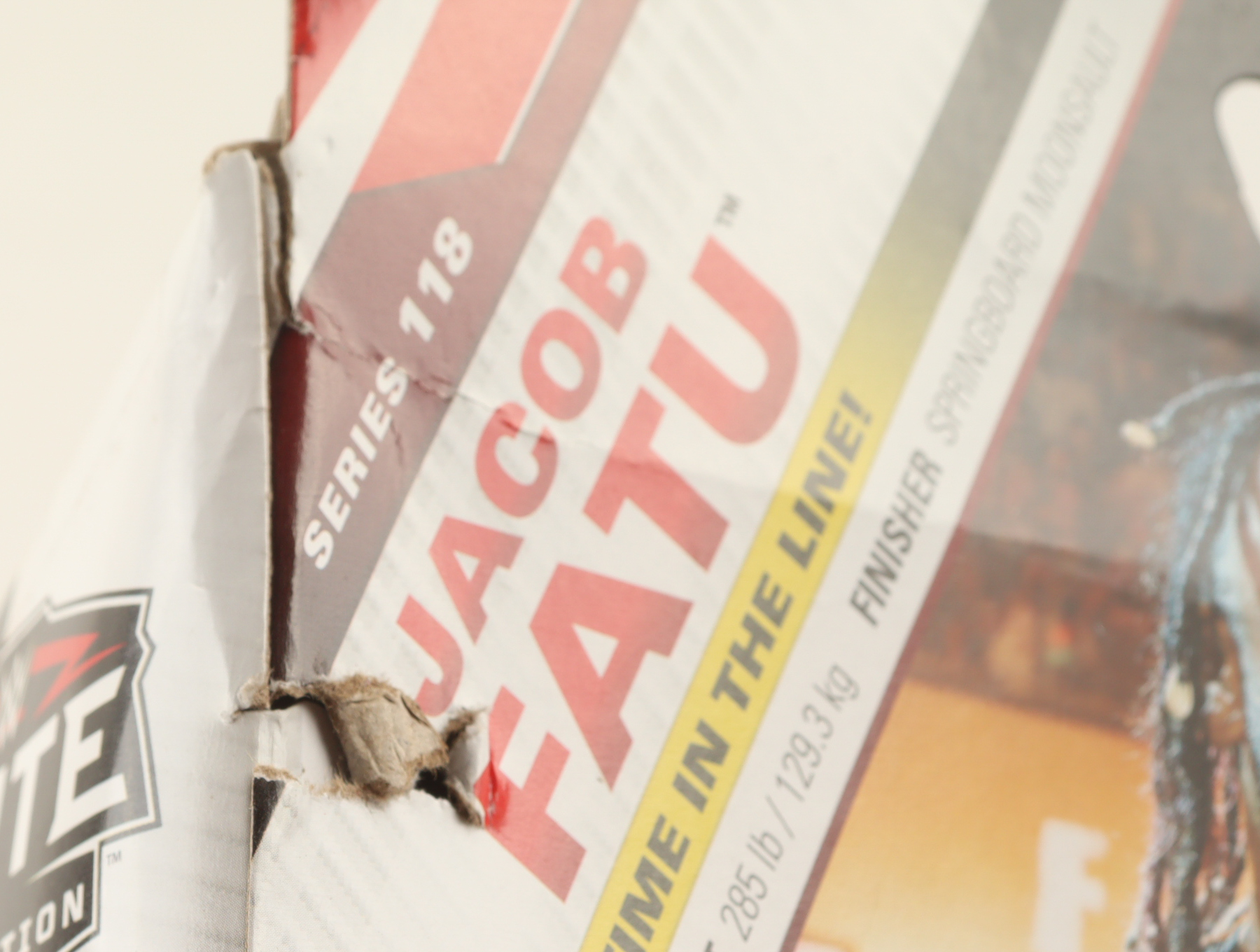 2023 Mattel WWE Series #118 action figure measures approximately 6" tall and has been hand-signed on the packaging by Jacob Fatu. Please note, there is crushing and tearing on the packaging - see photos for more detail regarding the condition of the item.