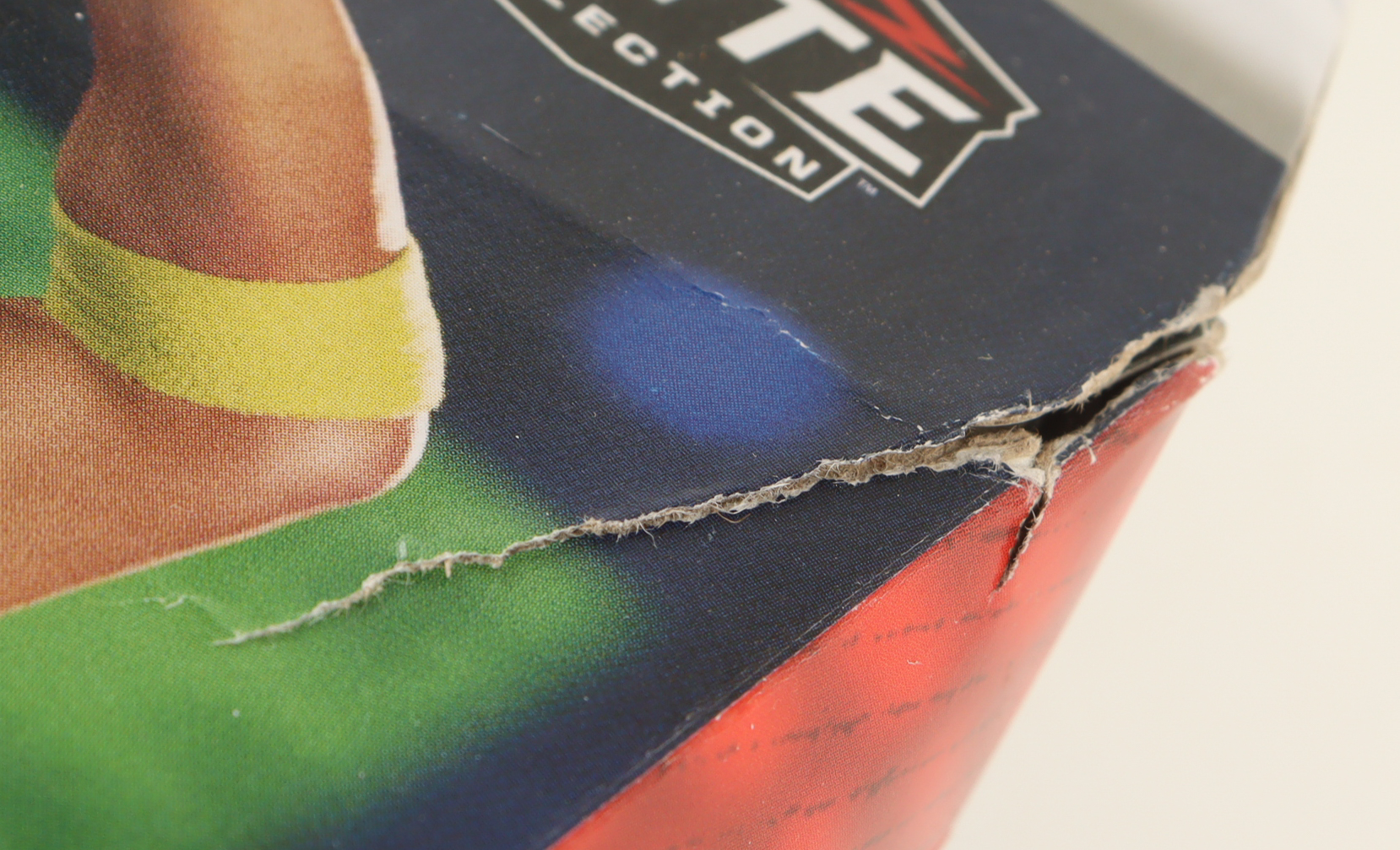 2023 Mattel Elite Collection action figure measures approximately 6" tall and has been hand-signed on the packaging by AJ Styles. Please note, there is crushing and tearing on the packaging - see photos for more detail regarding the condition of the item.