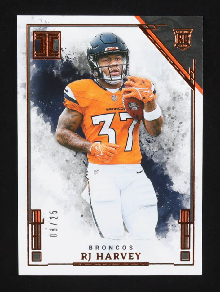 RJ Harvey 2025 Panini Impeccable Bronze #78 RC #08/25