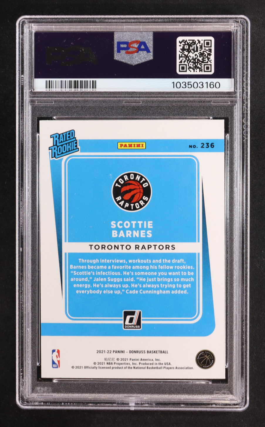 Scottie Barnes 2021-22 Donruss #236 RR RC (PSA 10)