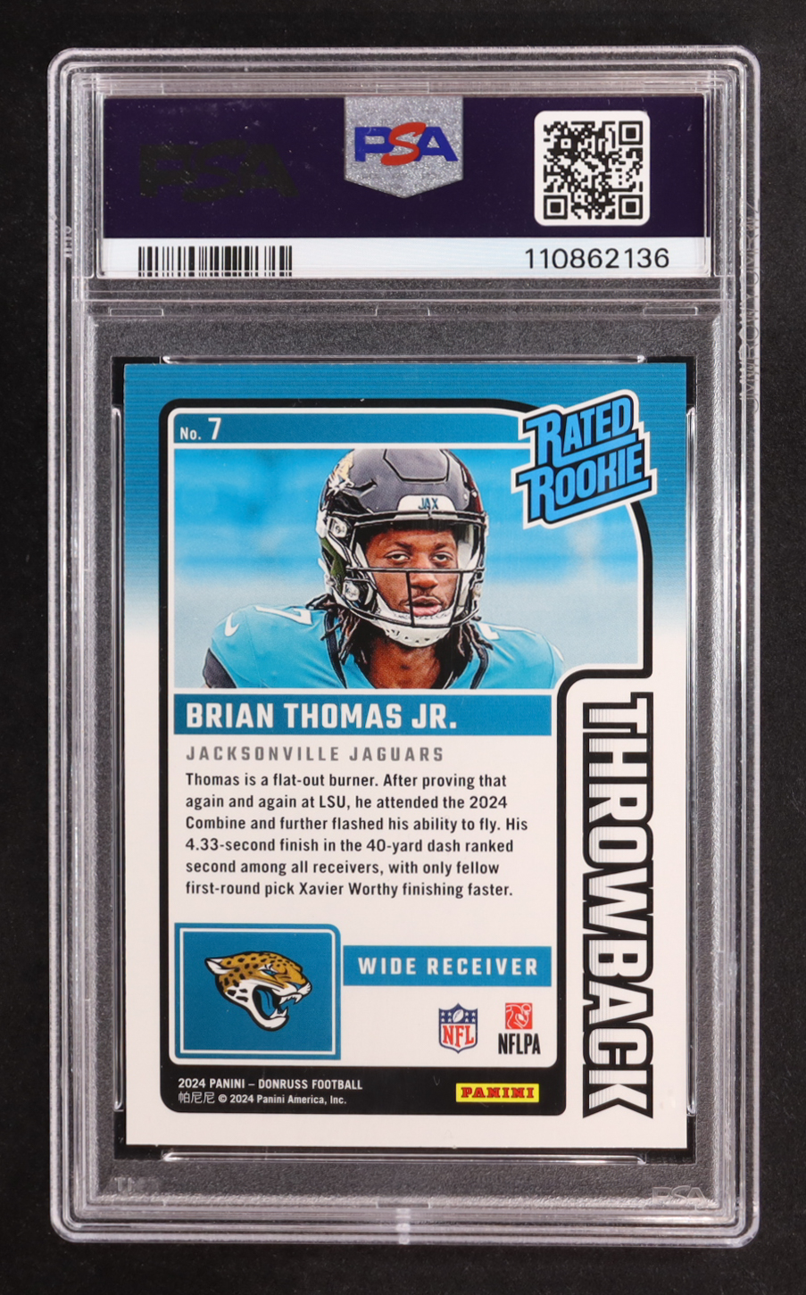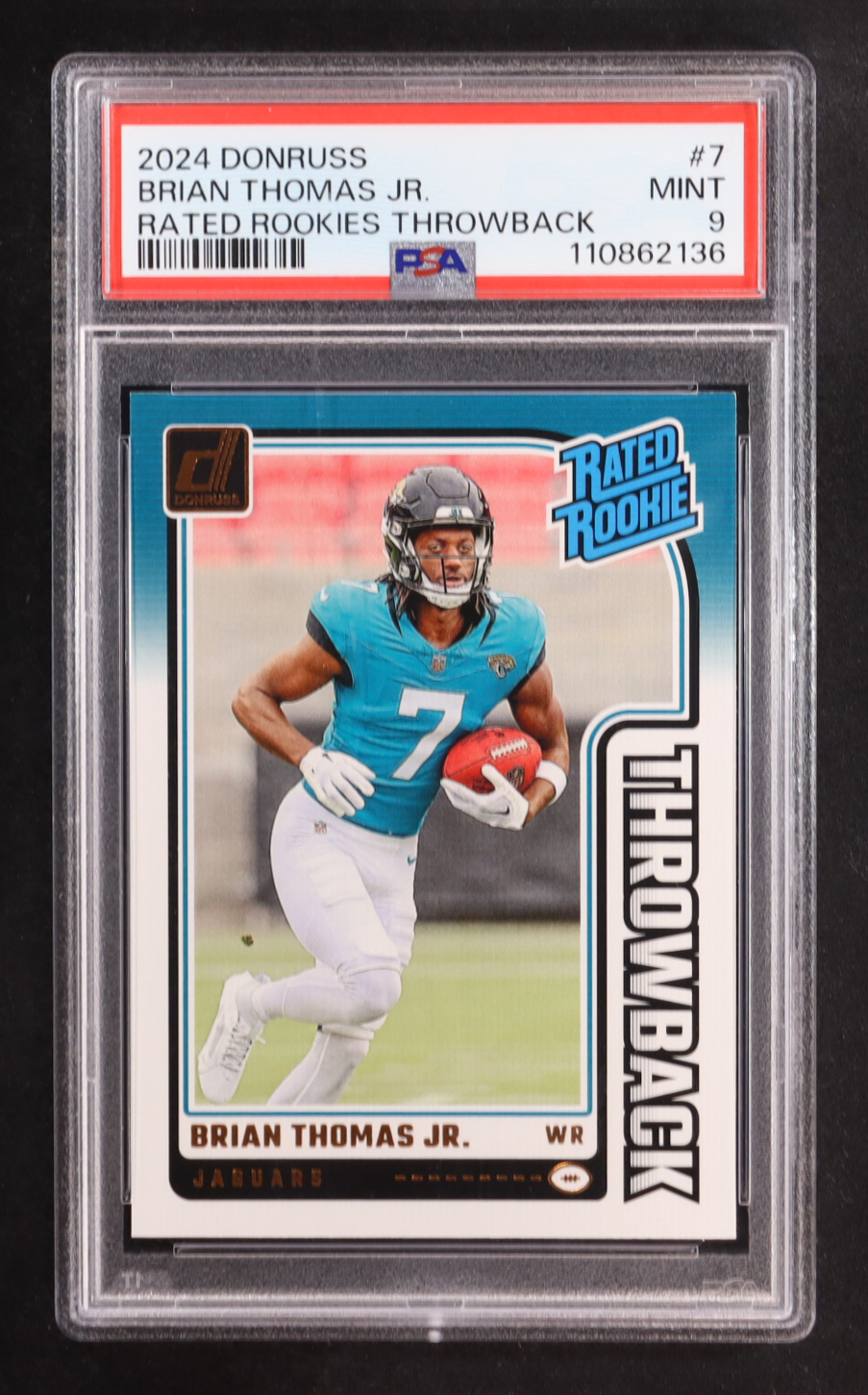 Brian Thomas Jr. 2024 Donruss Rated Rookies Throwback #7 RC (PSA 9)