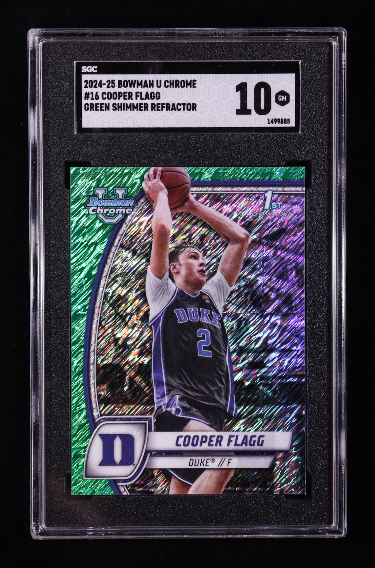 Cooper Flagg 2024-25 Bowman Chrome University Green Shimmer Refractors #16 RC (SGC 10)