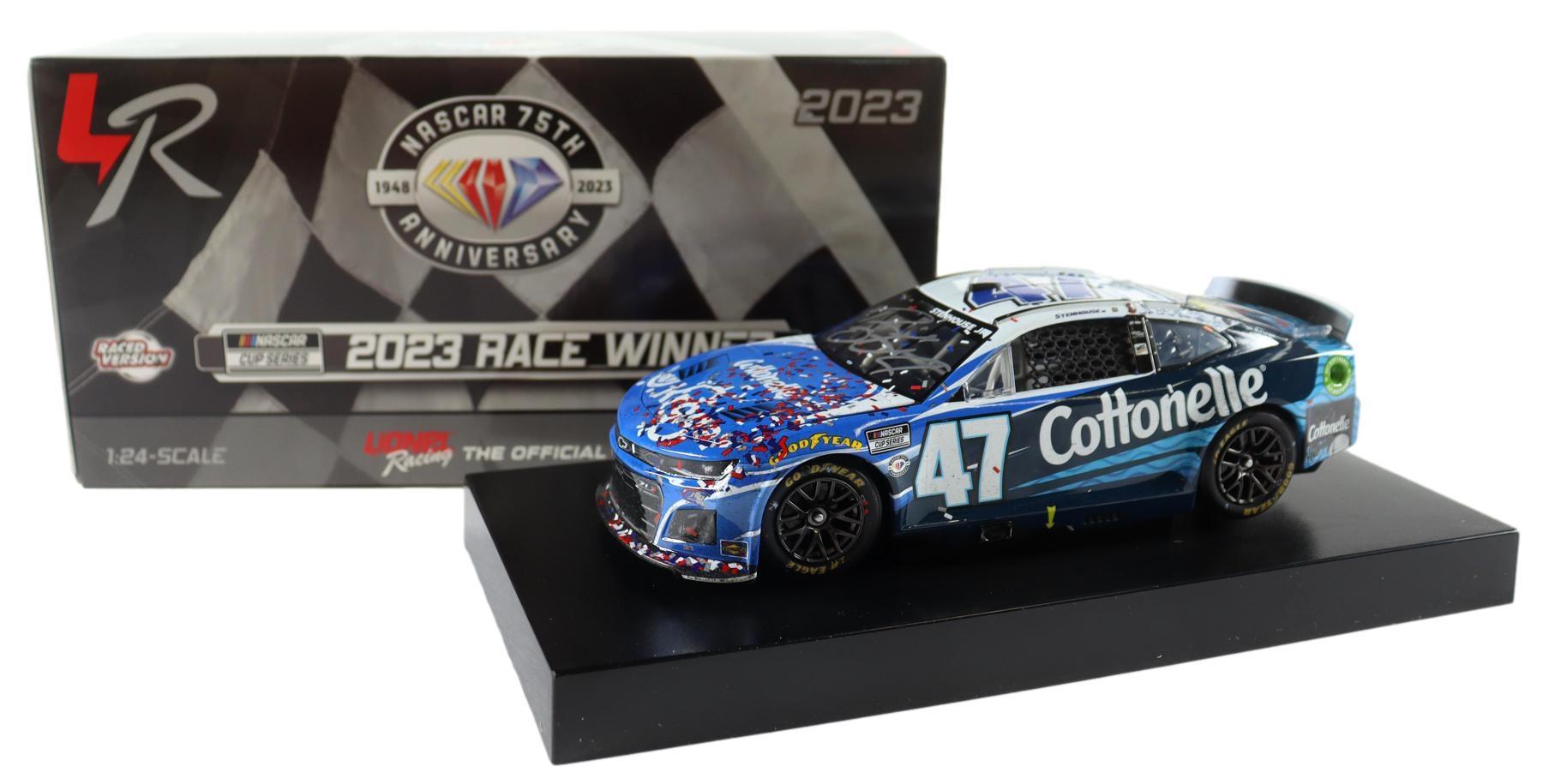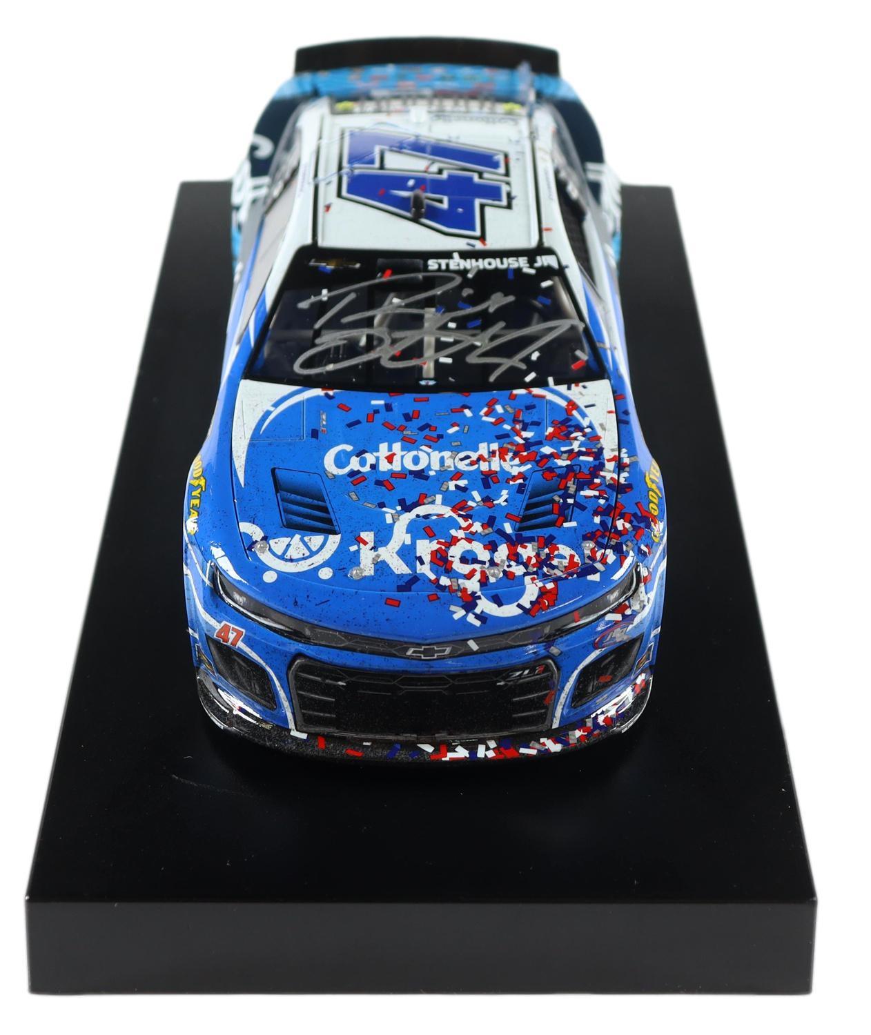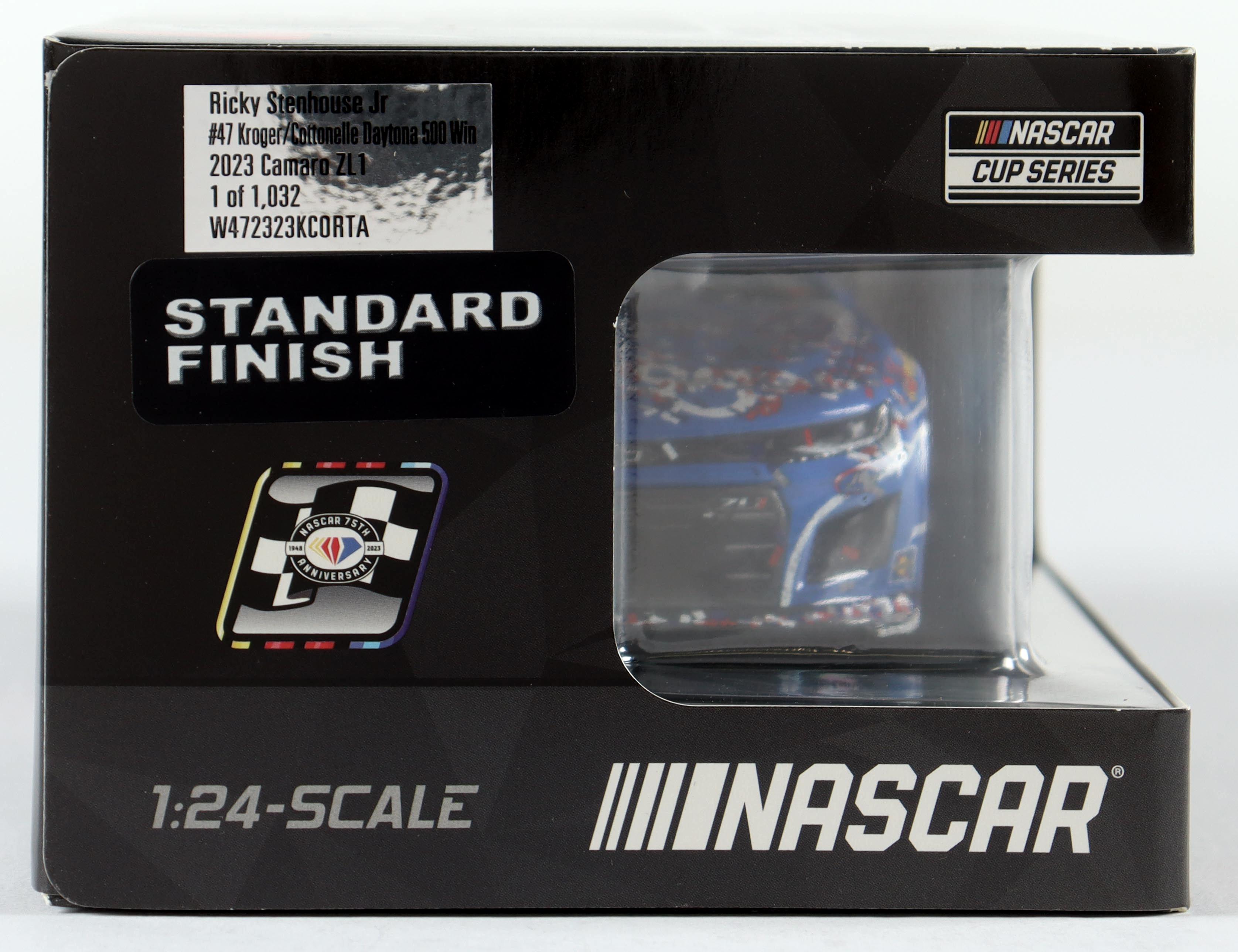NASCAR premium die-cast car has been hand-signed by Ricky Stenhouse Jr. The #47 Kroger Daytona 500 Raced Win 2023 Chevy Camaro ZL1 is a limited edition to just 1,032 produced.