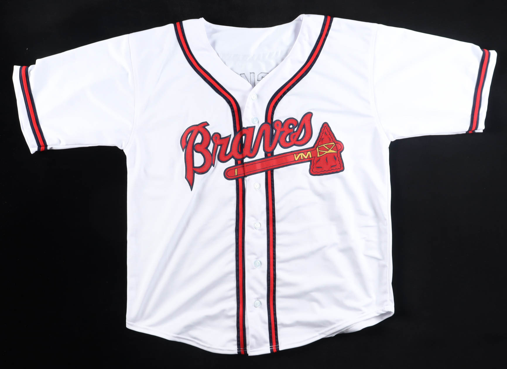 Custom jersey with everything sewn on, size XL. Hand-signed and inscribed by John Rocker.