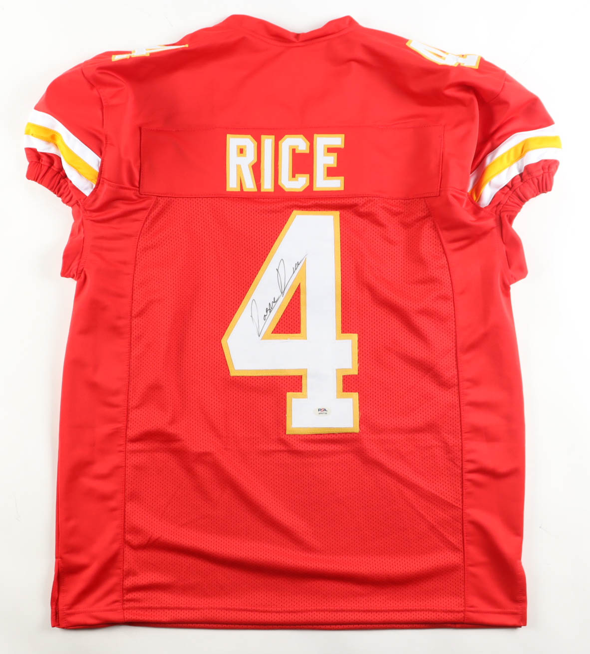 Custom jersey with everything sewn on, size XL. Hand-signed by Rashee Rice.
