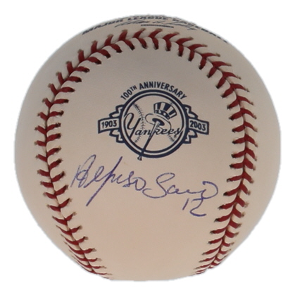 Rawlings New York Yankees 100th Anniversary Official Major League Baseball. Hand-signed by Alfonso Soriano (New York Yankees).