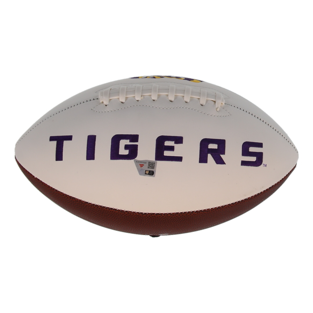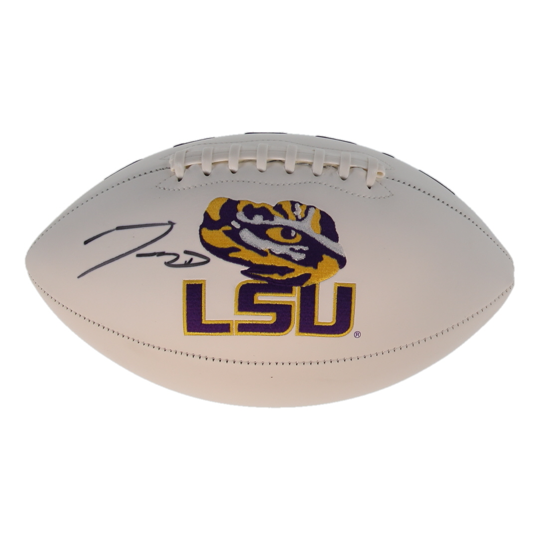 LSU Tigers Logo football. Hand-signed by Jayden Daniels. Please note, the ball has been stained above signature. See photos for more details.