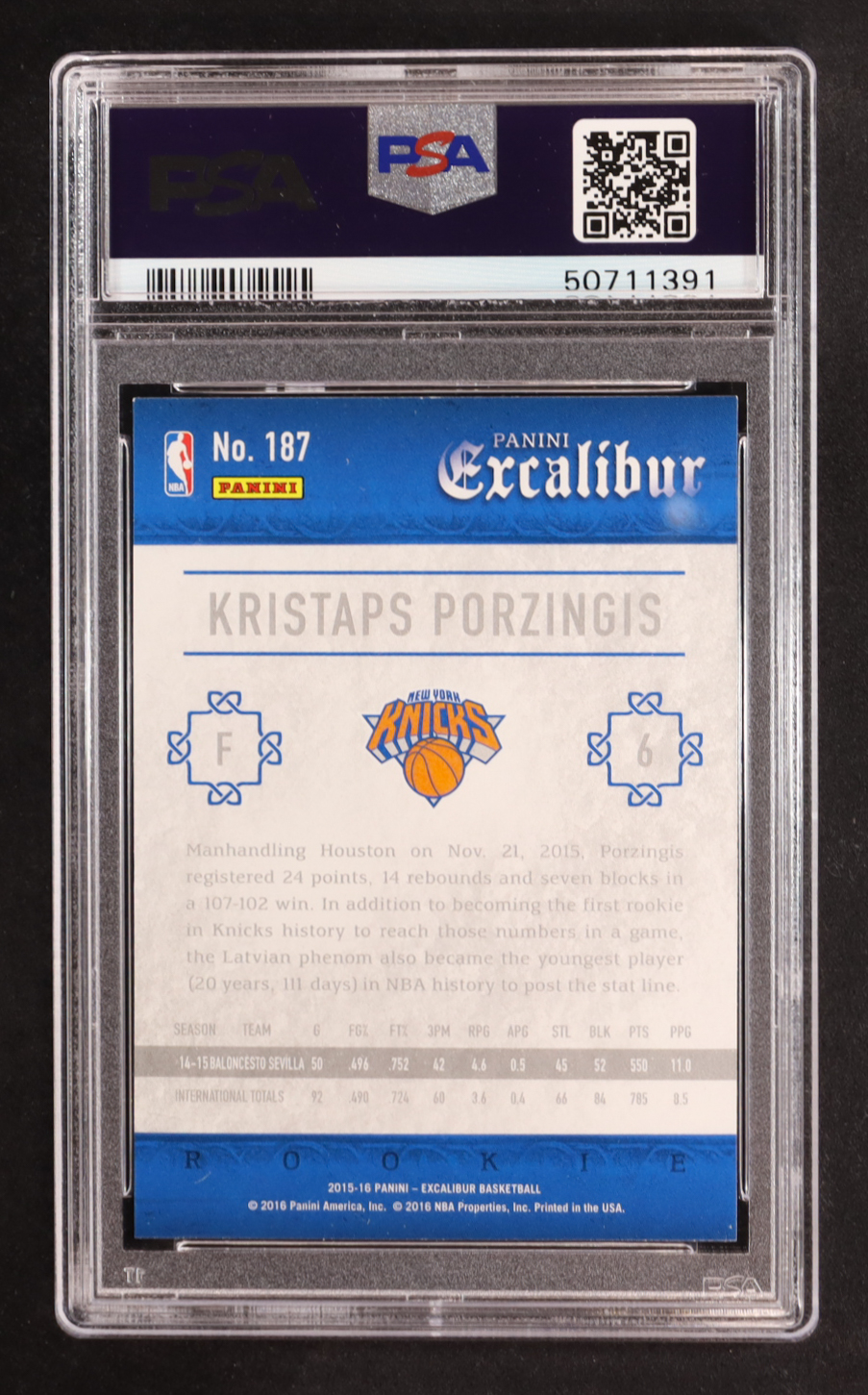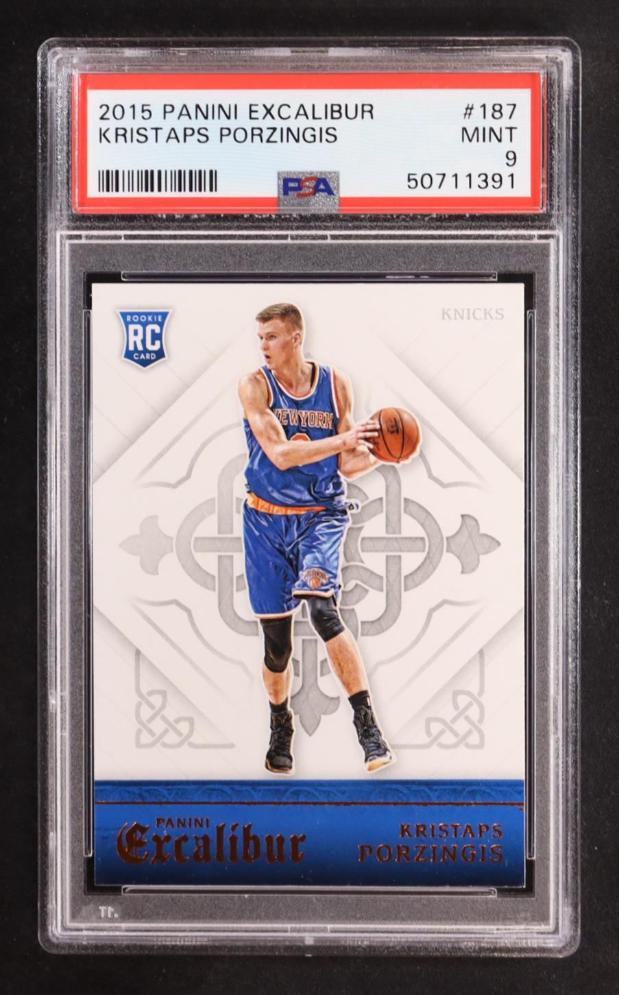 Kristaps Porzingis 2015-16 Panini Excalibur #187 RC (PSA 9)