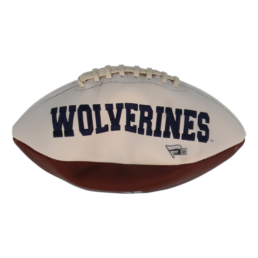 Michigan Wolverines Logo football. Hand-signed by Jim Harbough. Please see photos for more details regarding the condition of the item.