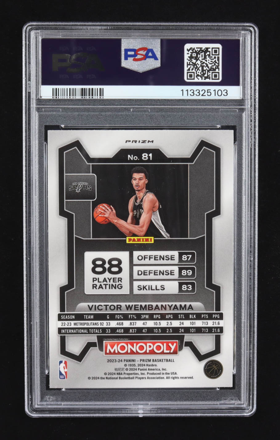 Victor Wembanyama 2023-24 Panini Prizm Monopoly Purple #81 RC (PSA 9)