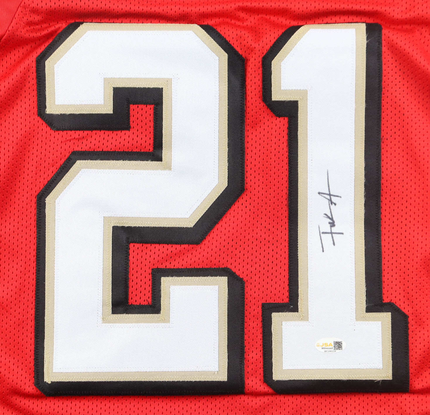 Custom jersey with everything sewn on, size XL. Hand-signed by Frank Gore.