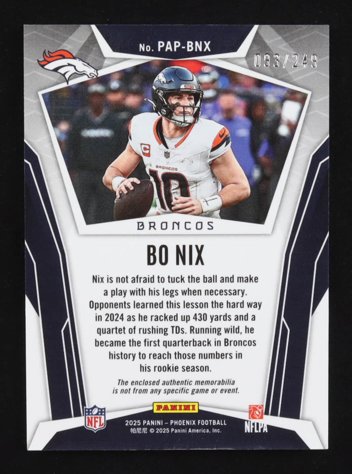 Bo Nix 2025 Panini Phoenix Pandora Patches Red #6 #093/249