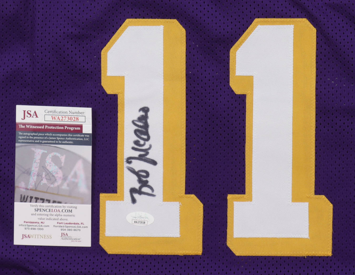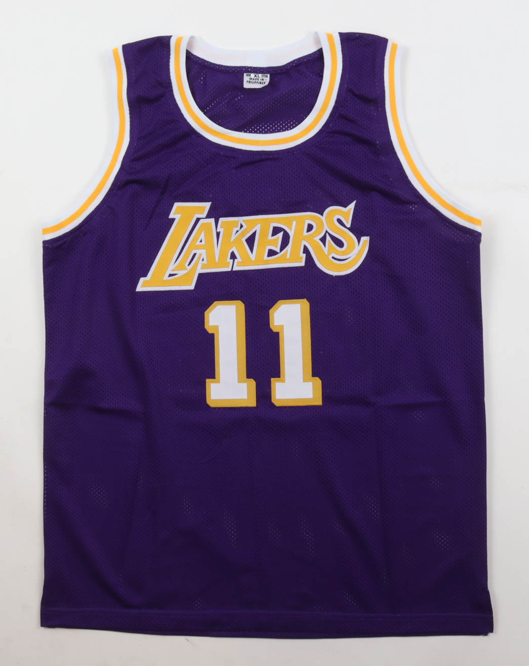 Custom jersey with everything sewn on, size XL. Hand-signed by Bob McAdoo (Los Angeles Lakers, HOF).