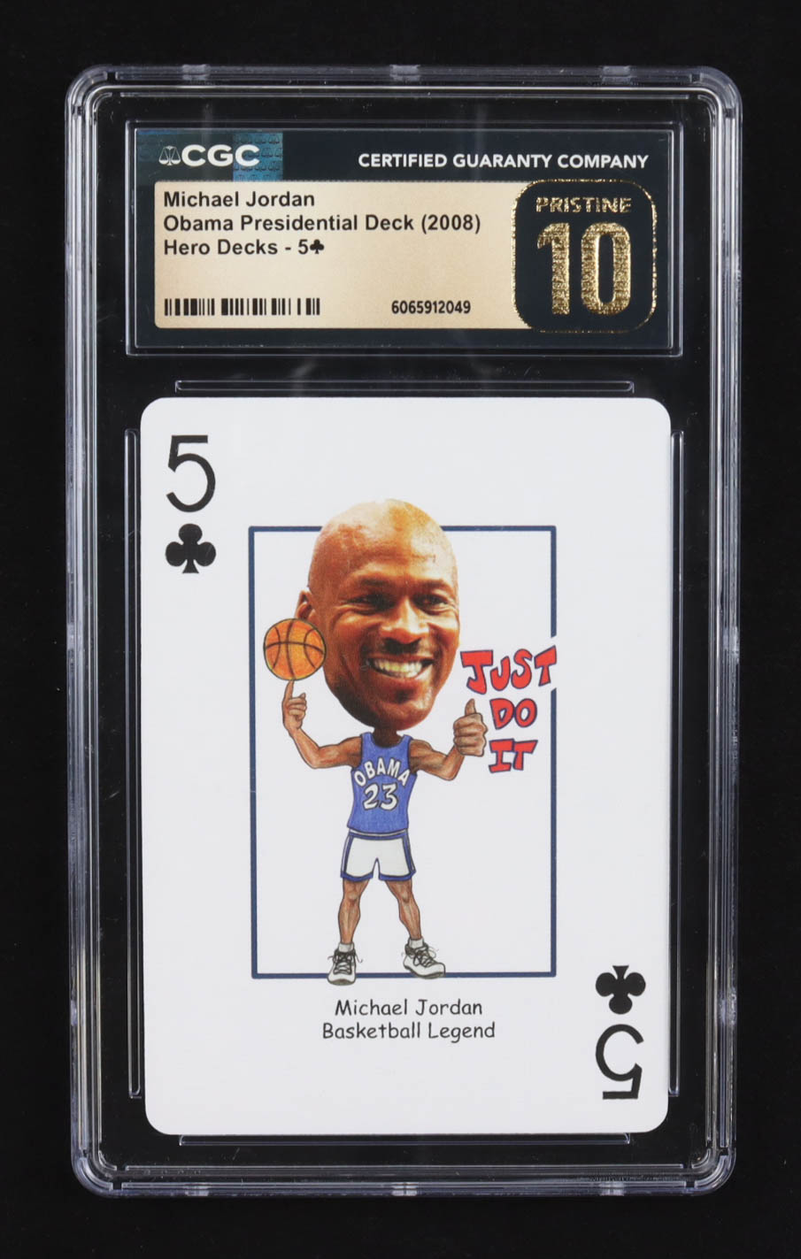 Michael Jordan 2008 Hero Decks Obama Presidential Deck Five of Clubs Playing Card (CGC Black Label Pristine 10)