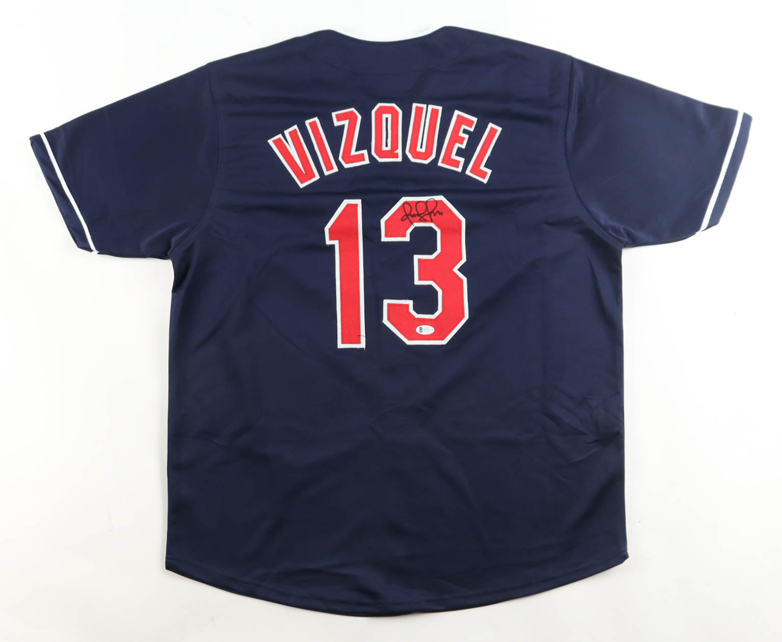 Custom jersey. Everything is sewn on, size XL. Hand-signed by Omar Vizquel.