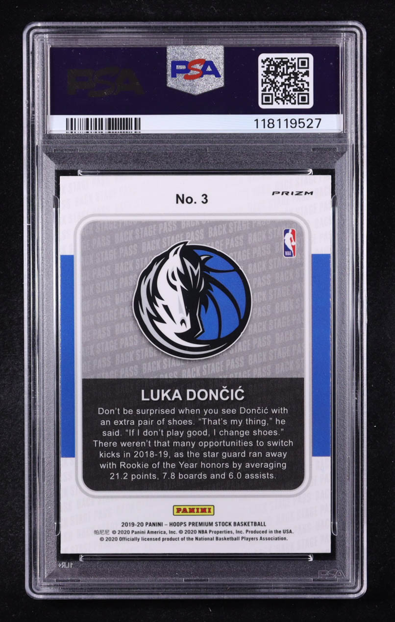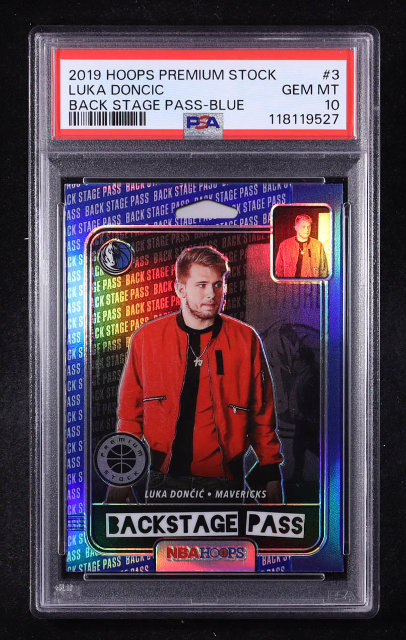 Luka Doncic 2019-20 Hoops Premium Stock Back Stage Pass Blue #3 (PSA 10)