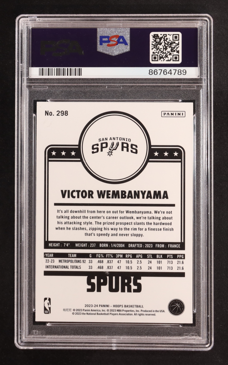 Victor Wembanyama 2023-24 Hoops #298 RC (PSA 9)