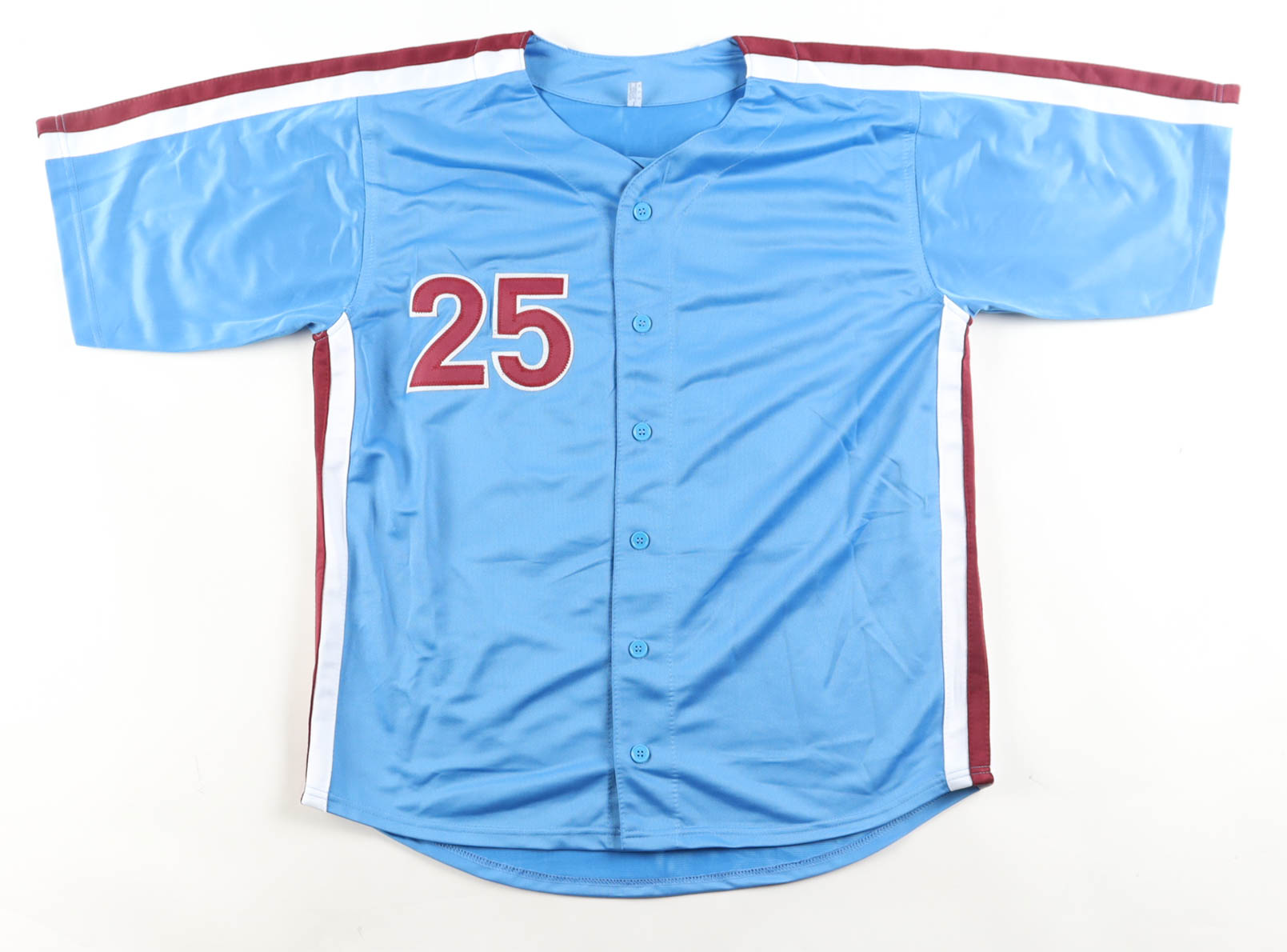 Custom jersey. Everything sewn on, size L. Hand-signed by Matt Strahm.
