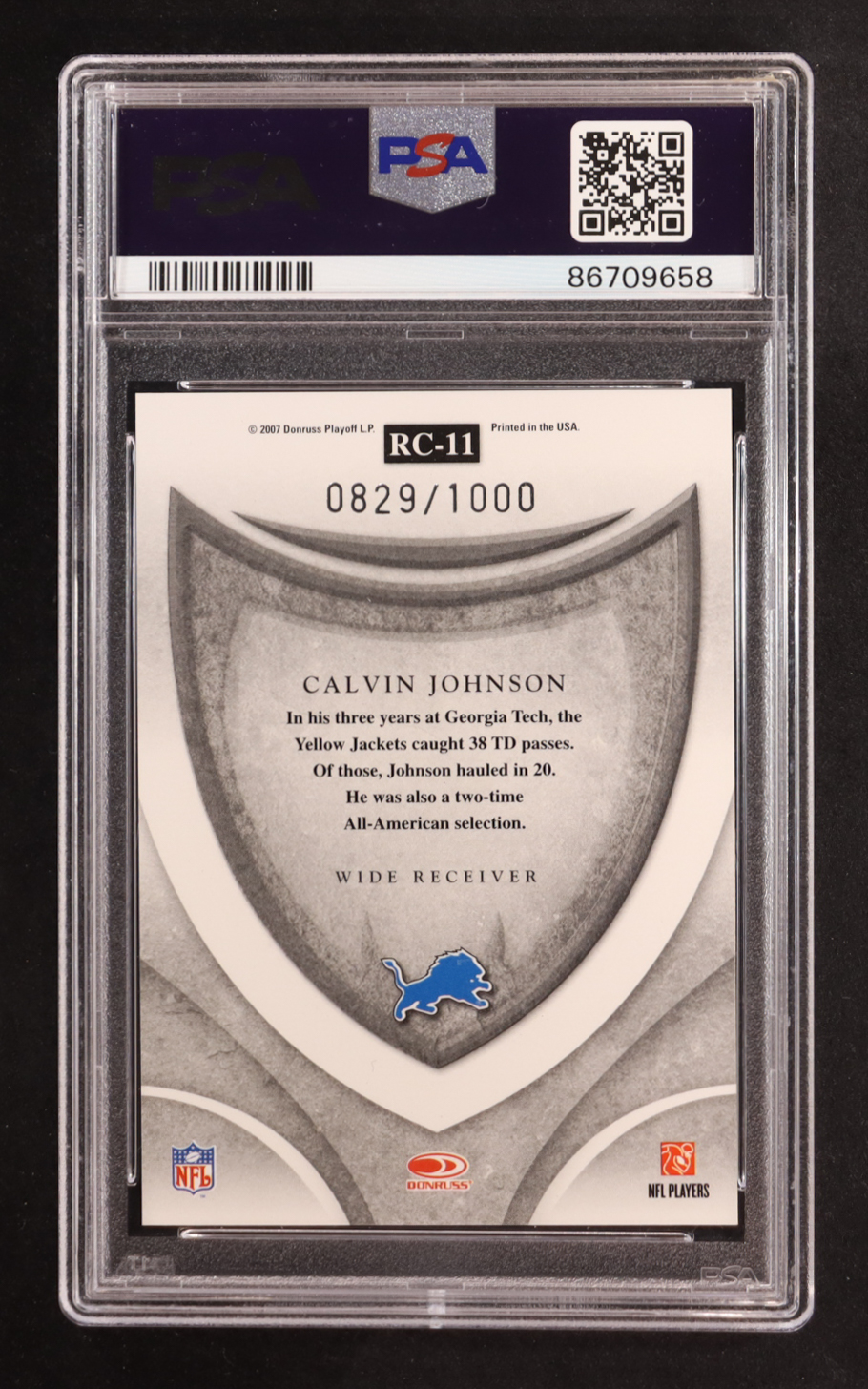 Calvin Johnson 2007 Leaf Rookies and Stars Rookie Crusade Red #11 #0829/1000 RC (PSA 8)