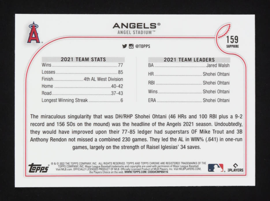 Angels 2022 Topps Chrome Sapphire #159