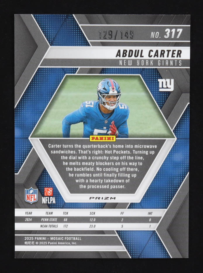 Abdul Carter 2025 Panini Mosaic Silver Knight #317 #129/149 RC