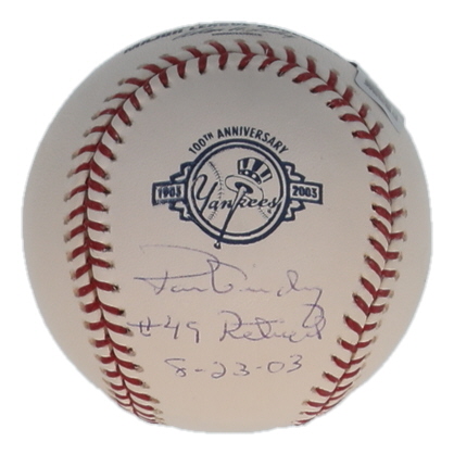 Rawlings Official Major League New York Yankees 100th Anniversary Logo Baseball. Hand-signed and inscribed by Ron Guidry (New York Yankees). Please note, the baseball is limited edition and is #30 / 149.