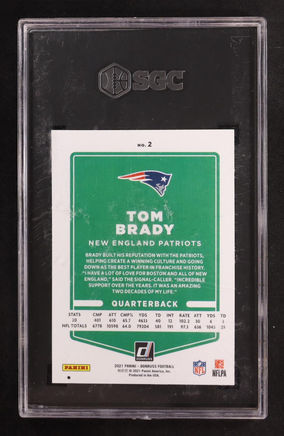 Tom Brady 2021 Donruss Press Proof Premium #2 (SGC 9.5)