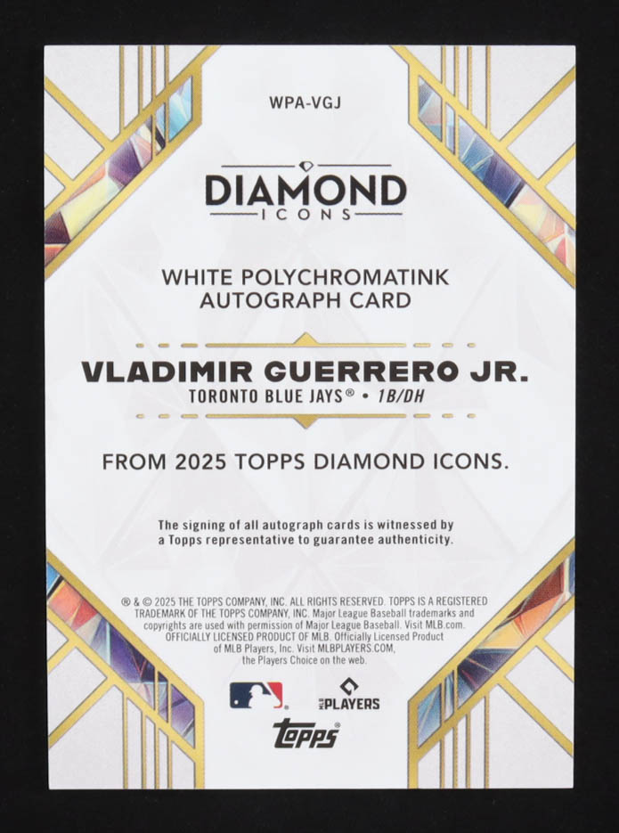Vladimir Guerrero Jr. 2025 Topps Diamond Icons White PolychromatINK Autographs Black Purple Ink #WPAVGJ #03/10