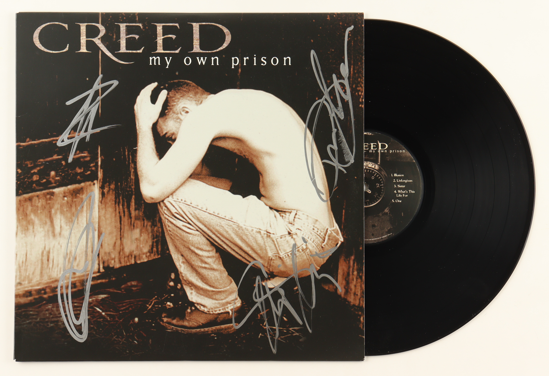 Creed "My Own Prison" Vinyl Record Album Band-Signed By (4) with Scott Stapp, Mark Tremonti, Brian Marshall & Scott Phillips (JSA)