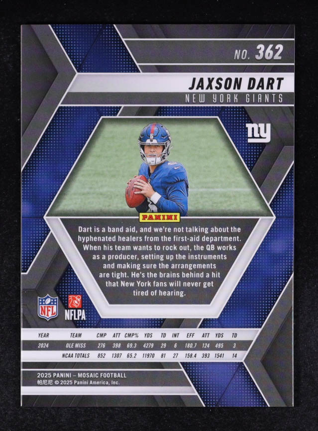 Jaxson Dart 2025 Panini Mosaic #362 RC