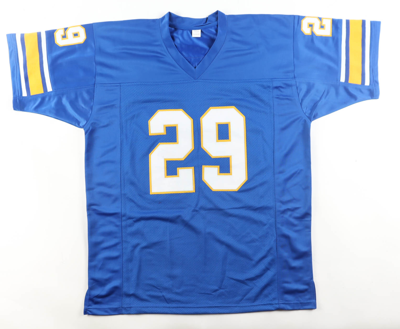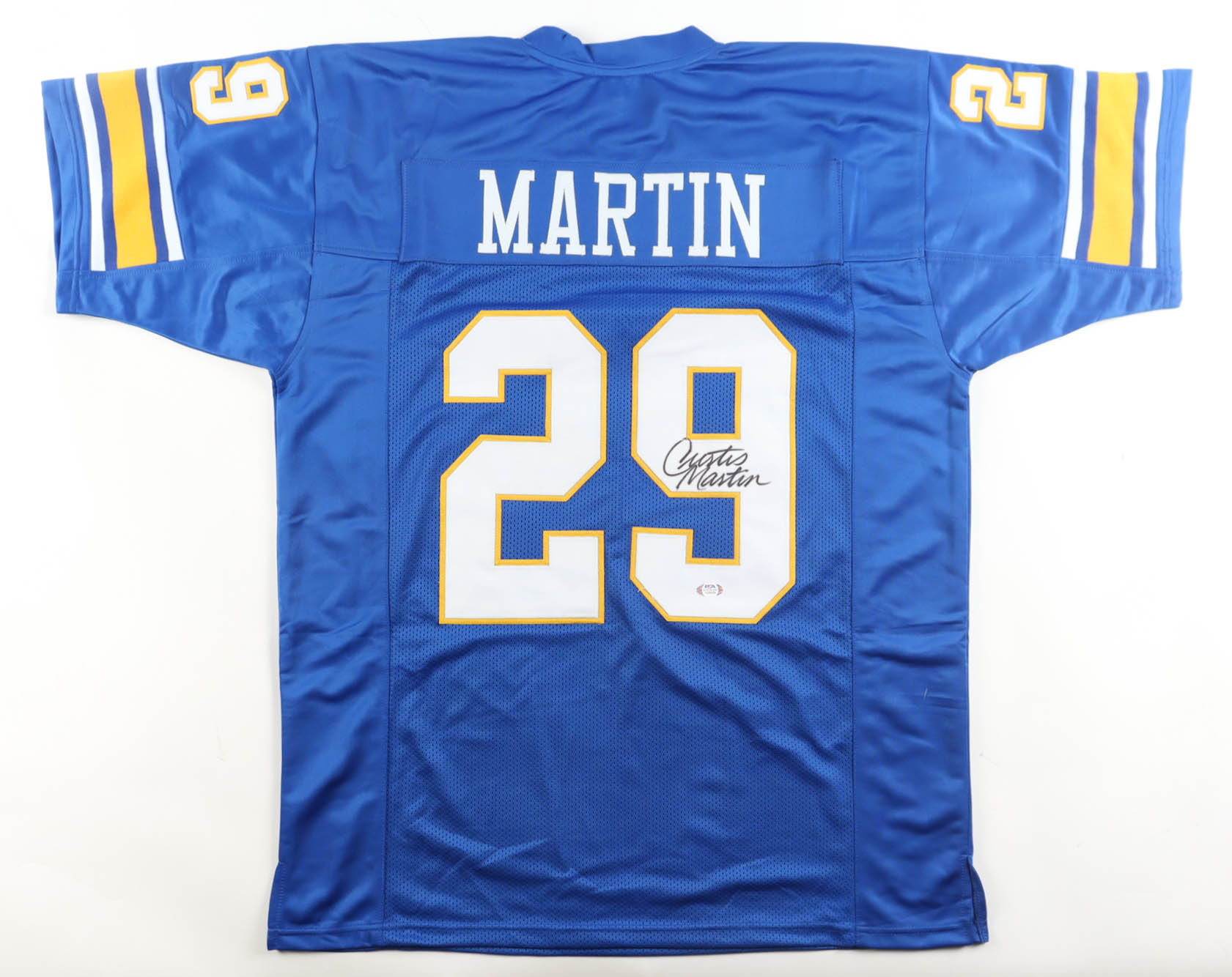 Custom jersey. Everything is sewn on, size XL. Hand-signed by Curtis Martin (HOF). Please note, the signature has bled.