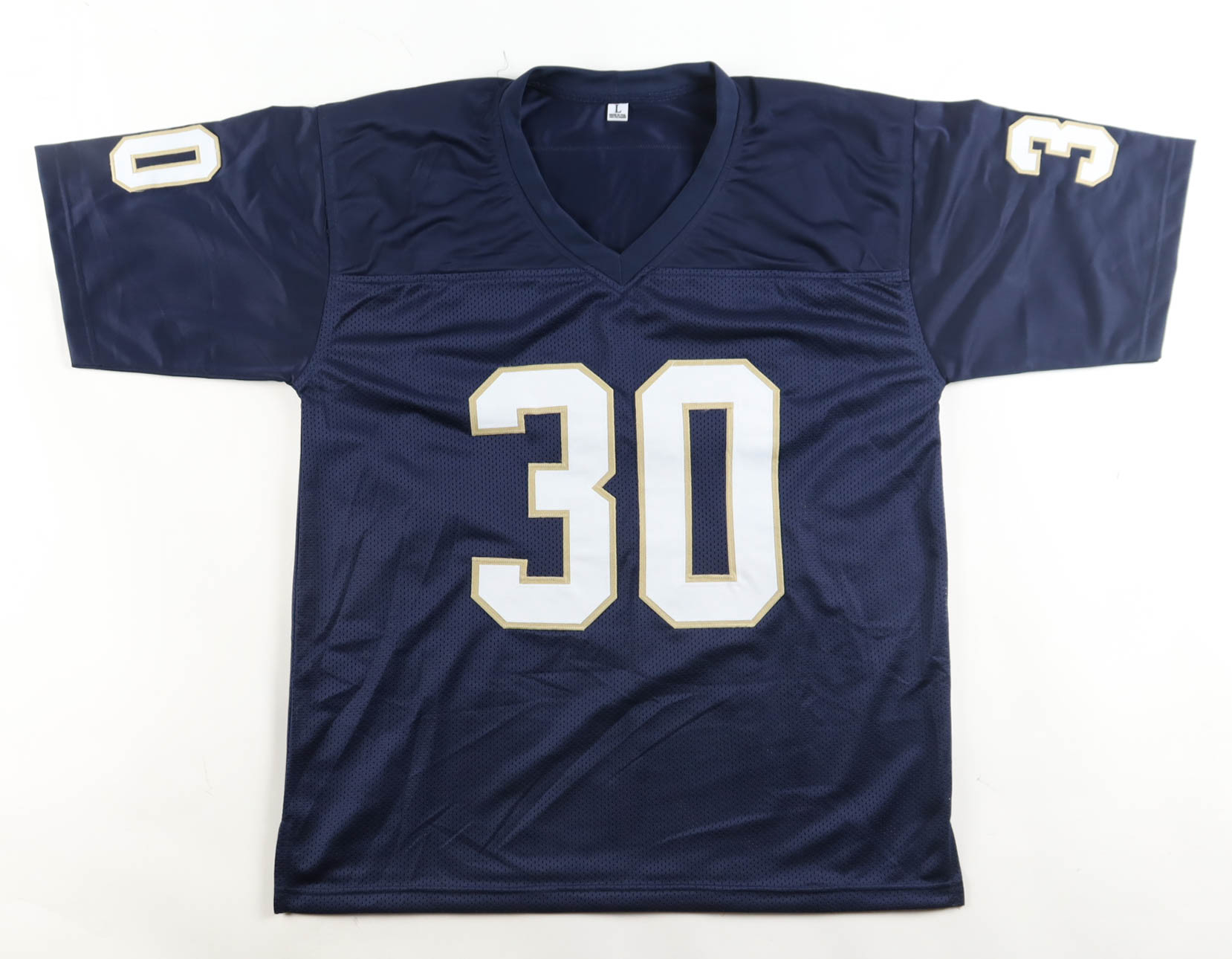 Custom jersey with everything sewn on, size XL. Hand-signed by Frank Stams. Please note, glue is visible through the reverse numbers and the signature has bled.