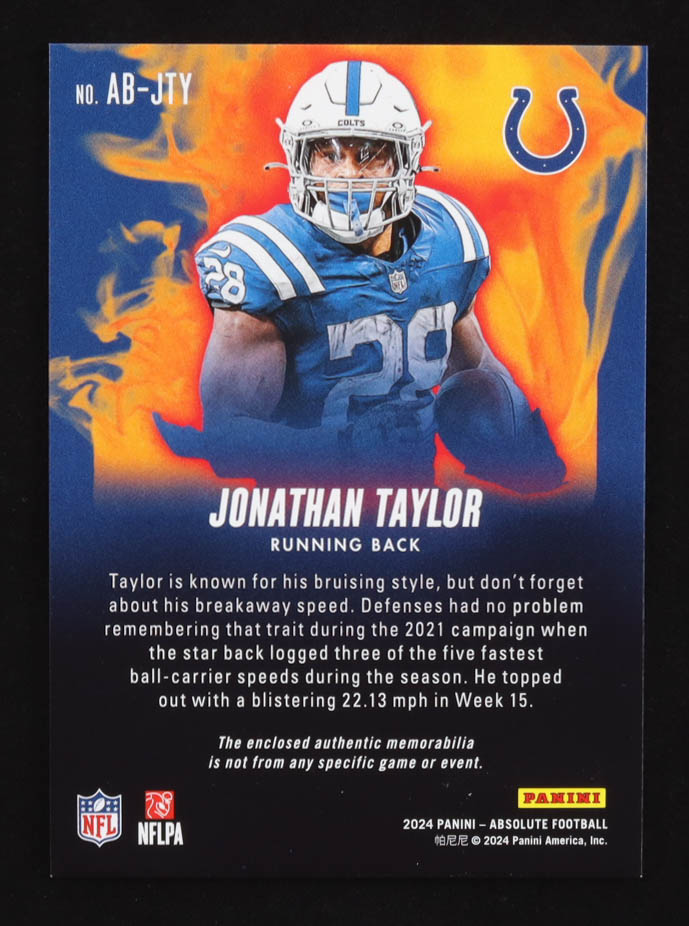 Jonathan Taylor 2024 Panini Absolute Burners Patch #AB-JTY