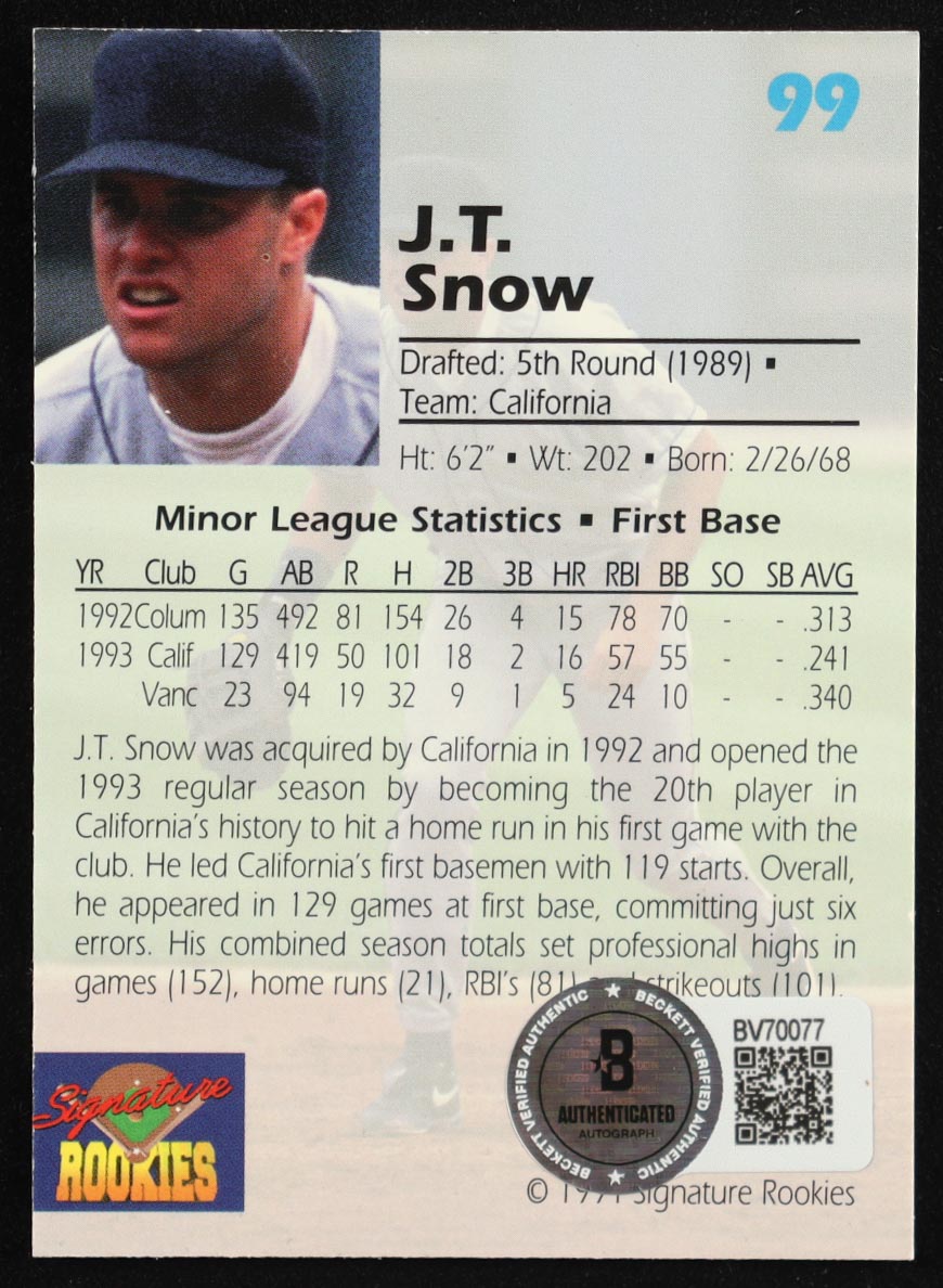 J.T. Snow Signed 1994 Signature Rookies Draft Picks Signatures #99 #6412/7750 (Beckett)