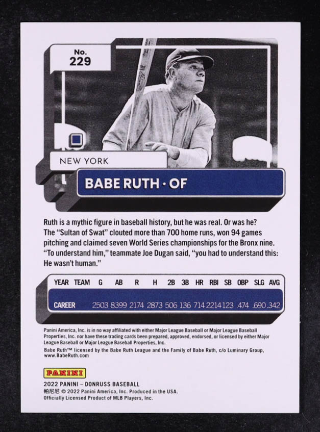 Babe Ruth 2022 Donruss Presidential Collection #229 #31/46