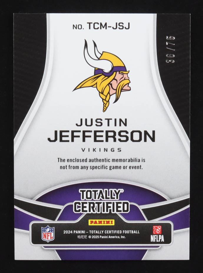 Justin Jefferson 2024 Panini Totally Certified Blue Mirror Patch MEM #TCM-JSJ #38/75