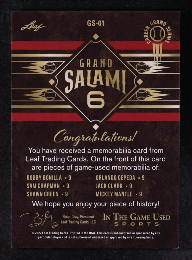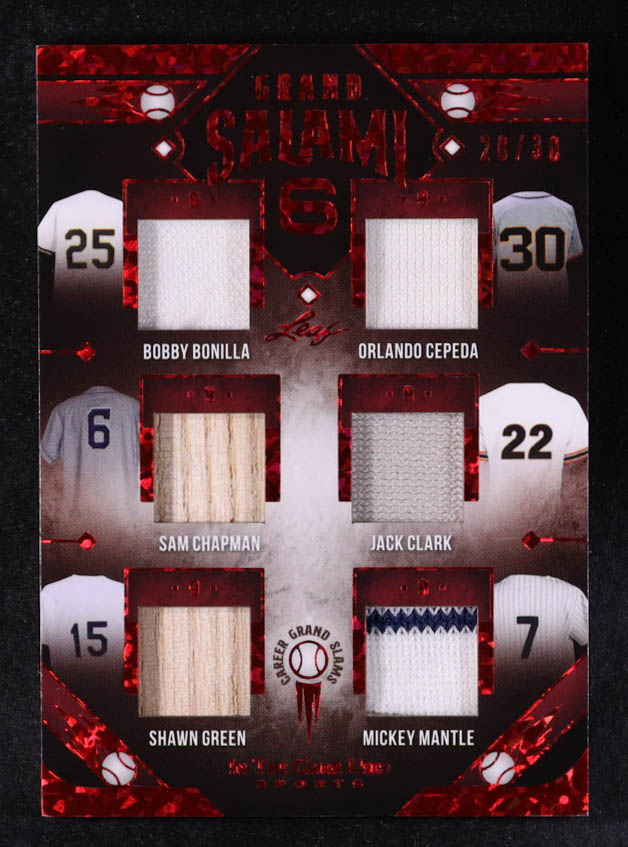 2022 Leaf ITG Used Sports Grand Salami 6 Red Pattern #GS01 Bobby Bonilla / Orlando Cepeda / Sam Chapman / Jack Clark / Shawn Green / Mickey Mantle #20/30